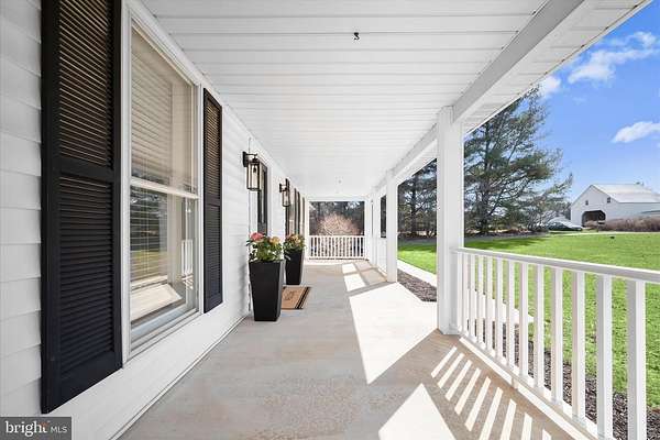 Welcome to Western Howard County. This classic Colonial sits on an expansive 3.8-acre lot, offering a spacious open floor plan and ample room both inside and out. The home's picturesque exterior features a covered front porch spanning the full width of the house. Inside, neutral paint colors and updated light fixtures complement large windows that fill the space with natural light and beautiful views. The kitchen, updated three years ago, features white shaker cabinetry with soft-close drawers, butcher block countertops, a large sink with gooseneck faucet, and a breakfast area overlooking the deck. It connects seamlessly to the formal dining room, living room, and garage. The family room centers around a wood-burning fireplace insert and opens through an atrium door to the deck. A half bath on the main level was stylishly updated three years ago. Upstairs, four generously sized bedrooms include a primary suite with a walk-in closet and en suite bath featuring an elegant vanity and tub/shower with a soaking tub that was updated six years ago. The three additional bedrooms share a hall bath with a new vanity installed three years ago, plus a split water closet design for convenience. The unfinished lower level offers storage shelves and flexible space for a home gym, storage, or future finished rooms. An attached two-car garage and a spacious composite deck overlooking the backyard and trees complete this inviting home. The roof was replaced in 2015. The community provides park-like amenities just steps from your door, including tennis and volleyball courts, a playground, picnic and grilling areas, trails, and a scenic pond with a dock. Conveniently located near schools, shopping, Circle D Farm, Cattail Creek Country Club, and major commuter routes. This home perfectly combines classic style, modern updates, and a serene, spacious setting, making it an ideal retreat for family living and entertaining. Please note: photos depicting furniture have utilized virtual staging.