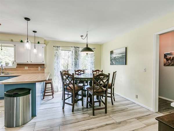 TWO HOUSES UNDER ONE ROOF! MUST SEE! MAIN HOUSE square footage DOES NOT include the additional 800 sq. ft. apartment. Enjoy a peaceful, wooded 1.58 acres in a TOP-RATED PUBLIC school district and the bonus of new dining and shopping coming soon across the street. Whether you commute, work from home, or simply enjoy being close to everything, this PRIME LOCATION delivers. THE MAIN HOME features a warm, spacious layout with a generous living room and cozy fireplace. The oversized kitchen and dining area provide ample space for everyday living and entertainment. The primary suite includes two closets and a walk-in shower, while additional highlights include wood-look tile floors, a dedicated laundry area, built-in storage, and an oversized two-car garage with room for tools, hobbies, or extra gear. THE SEPARATE TWO-BEDROOM APARTMENT offers endless possibilities-rental income, guest quarters, home office, or multigenerational living. This stylish space includes two bedrooms, a full bath, a full kitchen with quartz countertops, custom cabinetry, tile flooring, Thermopane windows, a dedicated HVAC unit, and a built-in refrigerator and oven. Efficient, modern, and move-in ready. Additional attractive features include a new roof, tankless water heater, water softener, and private well and septic. This is a rare opportunity to own a flexible property in an outstanding location. Schedule your private showing today!