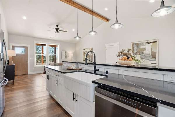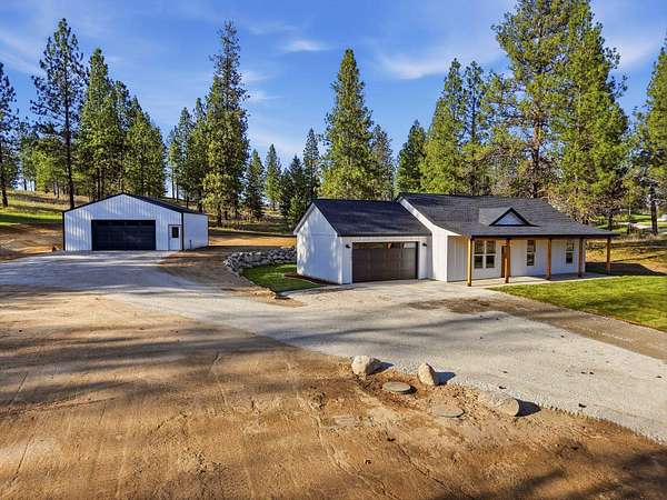 Beautifully designed, near-new (built in 2025) single-level 3 bed, 2 bath home set on just under 10 acres just outside of Spokane, WA. Thoughtfully crafted with vaulted ceilings, an open-concept layout, and warm, natural finishes, the home feels both elevated and inviting. The kitchen, dining, and living spaces flow effortlessly-perfect for slow mornings, hosting friends, or everyday life at home. Step outside to a covered patio made for outdoor entertaining, where you can take in the quiet and wide-open space around you. The primary suite offers a peaceful retreat, while two additional bedrooms provide flexibility for guests or a home office. The 30x30 shop offers ample room for hobbies, projects, or storage, and the acreage invites you to expand, explore, and truly make it your own. Enjoy nearby hiking, lakes, and outdoor recreation, just minutes from Deer Park and North Spokane.