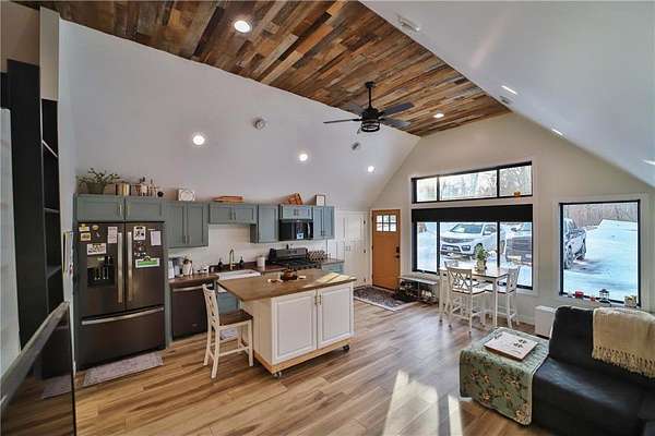 Don't miss this completely remodeled home on 11 acres in the heart of lakes country! Within the last year and a half, this home has been completely transformed to a cozy, welcoming residence. From spray-foam insulation and new windows, to black stainless steel appliances, vaulted barn wood ceilings, and tiled shower surround, the finishes chosen throughout are sure to impress. Inside you'll love the large primary bedroom complete with two closets, a main floor bath with double vanity, and an open concept living room, kitchen, and dining area for gathering. With a build site already cleared and septic system sized to accommodate 3 bedrooms, bring your ideas for expansion. The 11 acres consists of winding trails through the hardwoods, two deer stands with one being enclosed, and a peninsula jutting into a small lowland: great for deer activity and other wildlife. Tucked between the world-renowned Pelican and Horseshoe Lake Chains and the excellent fishing of Upper and Lower Mission Lakes, whether you are a full-time resident or looking for the perfect getaway, this location offers great access to all the lakes area has to offer: within minutes of world-class golf courses, mountain biking trails, resorts, bars/restaurants, and shopping! Schedule your showing today!