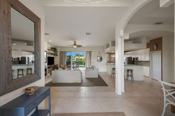 This centrally located equestrian property offers both convenience and functionality. The 8-stall center-aisle barn offers 12x12 stalls, tack and feed rooms, shutters, roll-down doors. Each stall equipped with fans, water and whole barn fly spray system. A new storage garage with covered manure area and separate home and barn entrances complete this ideal equestrian property. The 3,700 sq ft home features 4 bedrooms, 3 baths, and an open floor plan that flows to a spacious pool and patio overlooking the arena and grounds. The updated kitchen includes granite countertops, stainless steel appliances, and a separate laundry room with a 2-car garage. The 24,500 sf L shape arena measures 70x200 plus 85x123.