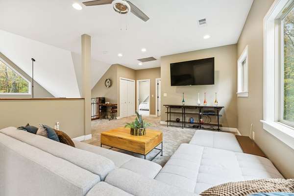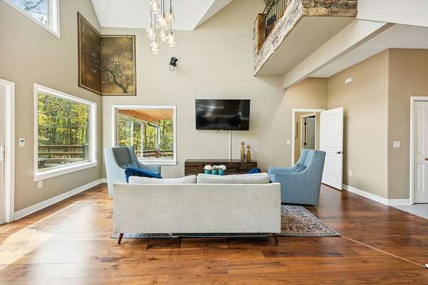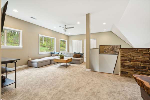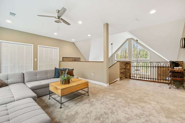 Custom 4 BR cedar home nestled within a serene, gated community on 5 breathtaking wooded acres. This stunning showplace tells a story of craftsmanship, heritage, & connection to nature. Step into a world where the soul of Tennessee is captured in every detail. Just a short walk from the lake, this home blends luxurious living with the tranquility of nature. Enter the Great Room, where TN black walnut stair rails rise to greet you, custom-milled to showcase the beauty of locally sourced wood. Overlooking this space is a unique coffee nook featuring antique wrought iron, lovingly restored from the property. The natural TN stone walkways, firepit areas & stacked stone around frame&cedar construction merge seamlessly into the lush landscape, creating inviting outdoor spaces for gathering, relaxation, and play. At the heart of this home's outdoor allure are the expansive 800' cedar decks. This remarkable space provides sweeping views inviting you to enjoy al fresco dining, entertaining, or simply basking in its peacefulness. It's an ideal setting for enjoying sunlit mornings or starry TN nights, a true extension of the home's warmth & character. Included are thoughtfully crafted amenities: outdoor disc golf meandering through the woods, a shooting range for enthusiasts, and a charming gazebo-covered bridge crossing a gentle creek. The property is a sanctuary of nature's gifts, with a thriving fruit orchard and a 50-foot stretch of hand-crafted vegetable & flower planters, offering seasonal abundance & vibrant colors. harvesting fresh produce right from your own land-true gifts from the earth that enrich the home's ambiance and provide an organic farm-to-table lifestyle. For added peace of mind, a cedar-lined safe room stands ready within. From the charming outdoor spaces to the luxurious interior features, every inch of this home radiates a sense of place & purpose. If you're seeking balance, beauty, and space to breathe--this is your next chapter.