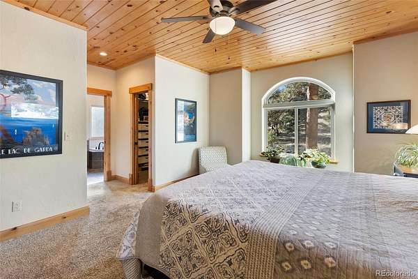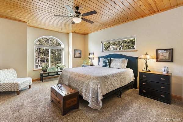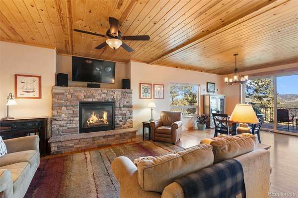 Outdoor living shines on the expansive deck overlooking Pikes Peak and the valley below, offering incredible Colorado sunsets and abundant wildlife. The oversized garage is plumbed for radiant in-floor heat, adding flexibility and comfort. The primary bathroom features a jetted soaking tub, creating a private spa-like retreat. A rare opportunity to own a meticulously maintained mountain retreat combining privacy, views, acreage, and modern mountain comforts.