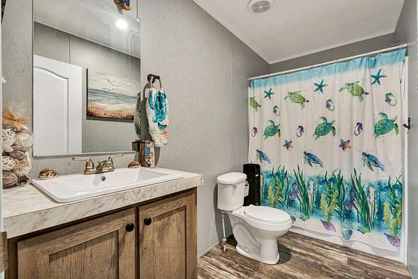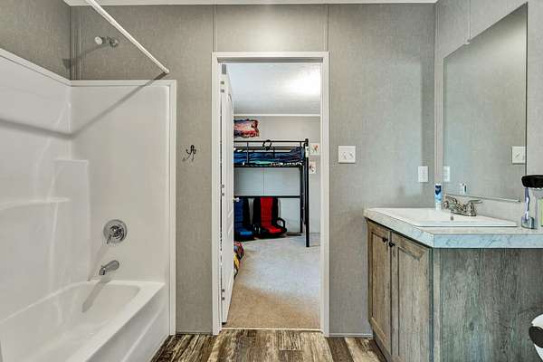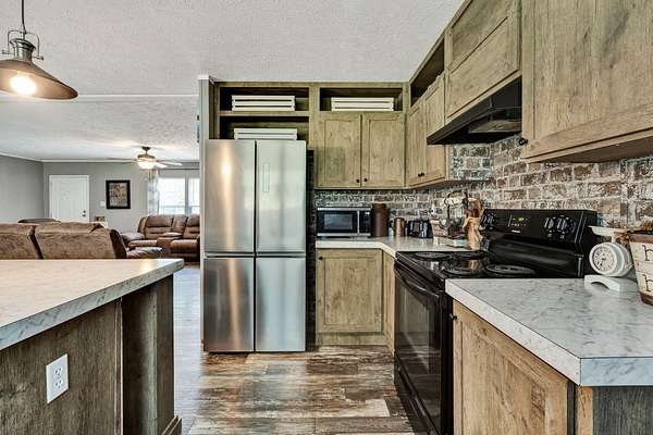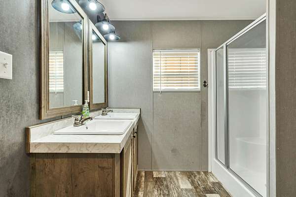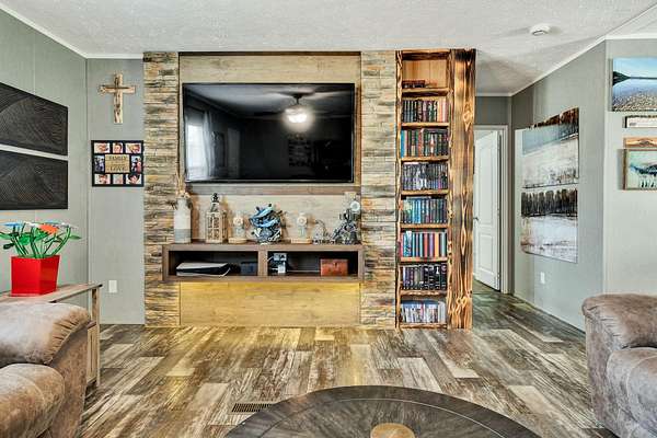 - Bathroom Mirror(s), Bookcases, Double Vanity, Kitchen Island, Open Floorplan, Primary Downstairs, Walk-In Closet(s)