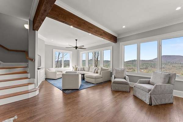 Nestled amidst the serene splendor of Tiger Mountain, this breathtaking 9-acre homestead seamlessly blends natural beauty with refined luxury. Located just 90 minutes from the heart of Atlanta and 12 minutes from the shores of Lake Burton and the charming town of Clayton, this property offers the perfect balance of accessibility and tranquil retreat. Perched high up the mountain the homestead boasts uninterrupted, panoramic views of pristine wilderness, facing expansive land managed by the US Forest Service-ensuring a timeless sanctuary with little chance of future development. Surrounded by towering hardwoods and the gentle whispers of nature this estate invites you to unwind and reconnect. The sprawling acreage provides endless possibilities whether you envision private hiking trials, a thriving garden, or simply a haven of peace and privacy. At the heart of this retreat lies an outdoor oasis designed for unforgettable gatherings: a heated pool with attached jacuzzi and cascading waterfall, a fully equipped outdoor kitchen, and a cozy fire pit area. All are crafted to elevate entertaining to a luxurious art form. Imagine hosting family and friends under the open sky, with ample space to invite then all- these amenities promise cherished memories filled with laughter, warmth and relaxation. The multilevel, Craftsman style, main house and accompanying pool house offer 8 spacious bedrooms, 8 full and 3 half bathrooms ensuring comfort and privacy for every guest. Enter the beautiful alder wood front door to discover rich hardwood floors that flow throughout. Ten-foot ceilings and eight-foot doors create an airy, expansive ambiance in every room. Adding to the allure are two stone fireplaces for those cool evenings. The owner's suite elevates luxury further with a spa-inspired bathroom featuring marble tile and a beautiful soaking tub room with a view overlooking the mountains. Convenience meets indulgence with two full kitchens, two additional kitchenettes, four laundry areas and a rejuvenating indoor sauna. Every detail has been thoughtfully designed to make life effortlessly enjoyable whether you're preparing a feast, unwinding after a day of mountain or nearby lake adventures or simply soaking in the serenity. From the crisp mountain air to the star-filled skies, this Tiger Mountain gem promises a lifestyle defined by natural wonder, boundless possibilities and the ultimate in sophisticated comfort. Imagine the memories waiting to be made in a place where luxury and nature unite in perfect harmony.