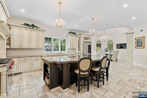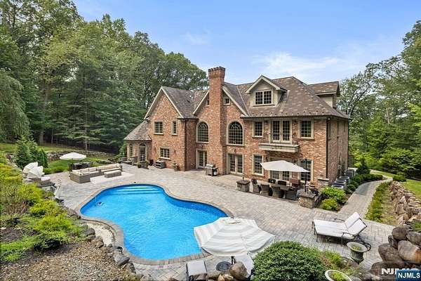 A Grand Estate of Timeless Elegance and Modern Luxury. Privately nestled behind gates on an ultra-secluded 2-acre estate, this stately all-brick Colonial offers approx. 12,000 sq ft of luxury across four levels of living with panoramic Ramapo Mountain views. Main level features a gracious guest suite, while the second floor hosts five en-suite bedrooms. The expansive top floor includes a bonus attic perfect for a gym, wellness studio, or creative retreat. Fully finished lower level offers a home theater, rec space, and more. Exceptional craftsmanship throughout with Brazilian cherry floors, soaring ceilings, and five fireplaces. Smart home features, commercial-grade elevator to all floors, and a flowing layout designed for both everyday living and grand entertaining. Outdoor oasis includes lush landscaping and a resort-style heated pool. A rare blend of timeless elegance, modern amenities, and complete privacy one of Saddle RiveraEUR(TM)s most exclusive estate offerings.