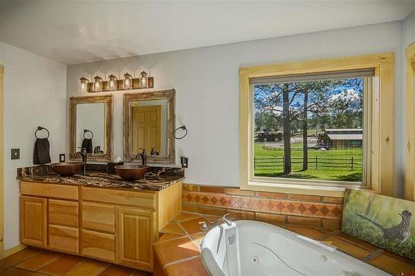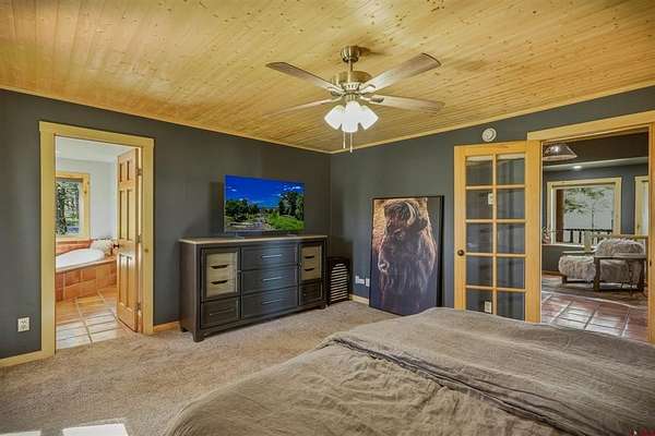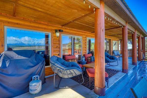 Kevin Blue, Best of Pagosa Springs, C: 970-946-6955, kevin@bestofpagosasprings.com, www.crenmls.com: VIEWS from Easy Street! This home sits on over 3 acres and has the million-dollar San Juan Mountain views you've been waiting for. A covered walkway leads to a spacious wrap around deck, perfect for quiet mornings or hosting gatherings. Equestrian ready, the 925 sq/ft barn includes concrete floors, electricity, water, 2 stalls, and a large breezeway, plus a large fenced, outdoor arena. The 2-car garage features a heated concrete apron at the doors, ideal for melting snow and ice during winter months. Inside, the lower level offers a private guest retreat with its own bedroom, bathroom, separate living area with a stone fireplace and a walkout patio. The main level primary bedroom includes an en suite bathroom with a soaking tub, and a generous walk-in closet. The main living area is filled with natural light and perfectly positioned to capture those breathtaking mountain views. All this and: A radon mitigation system, a septic system permitted for 3 bedrooms (room for expansion), a large asphalt gated driveway, No HOA, and just minutes from town.