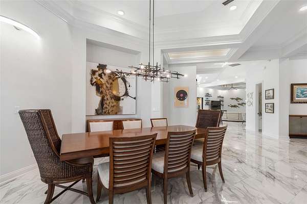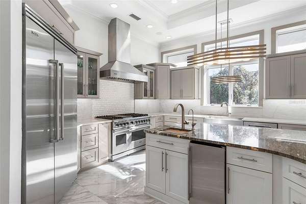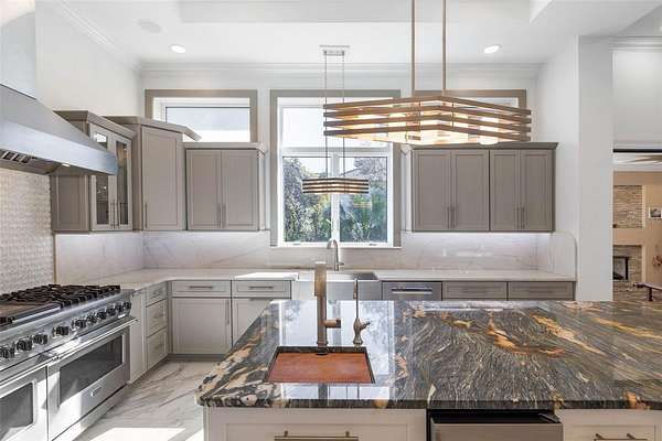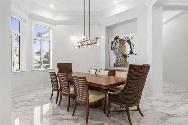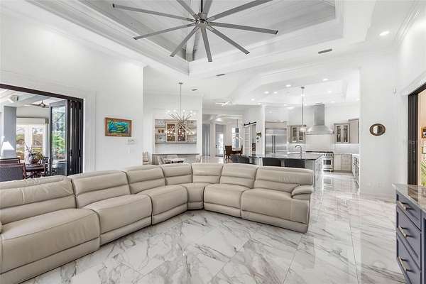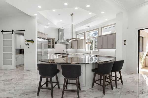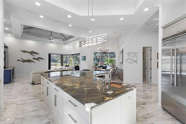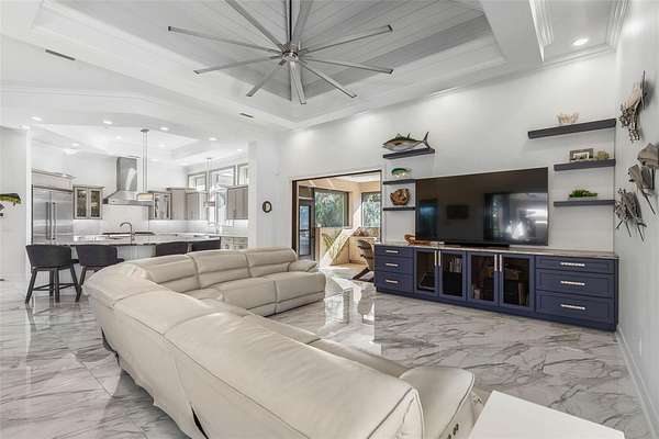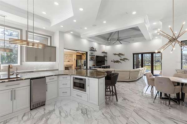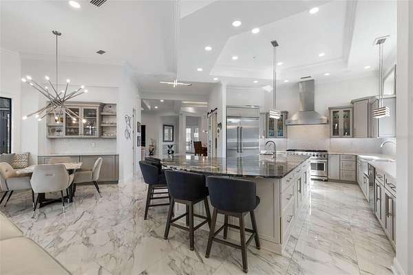 At the heart of the home, the gourmet chef's kitchen impresses with Viking stainless steel appliances, an oversized island, a butler's pantry, and a spacious eat-in dining area--ideal for both intimate gatherings and grand entertaining. Soaring ceilings and a dramatic wall of glass doors flood the living areas with natural light while seamlessly connecting indoor living to the waterfront outdoors.