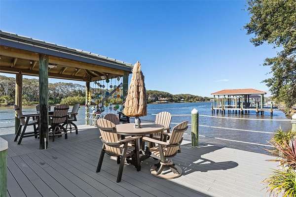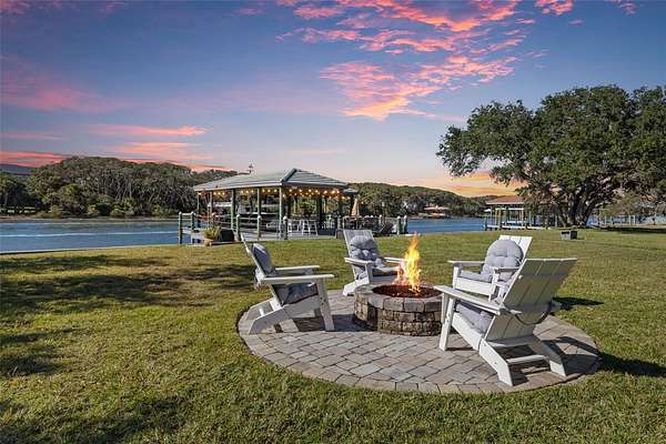 A second-story lookout provides panoramic views of the Intracoastal and nearby beaches, creating a spectacular vantage point for both sunrise and sunset. Outdoors, the property is further enhanced by a private dock featuring a brand-new covered 16,000-lb boat lift, along with both covered and open seating areas perfect for waterfront relaxation. Two fire pits in the backyard add warmth and ambiance to the serene setting. Additional highlights include 2023 A/C systems, a new hot water heater, and thoughtful upgrades throughout.