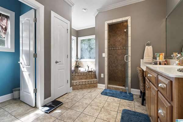 - Double Shower, French Doors, Jetted Tub, Linen Closet, Multiple Staircases, Recess Lighting, Separate Shower, Separate Vanities, Shared Bath, Textured Walls, Tub/Shower Combo, Walk-In Closets