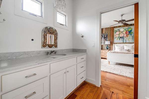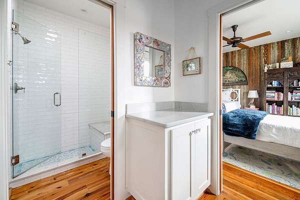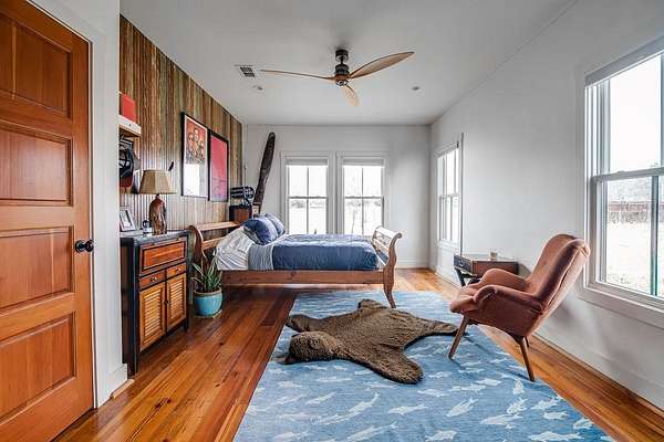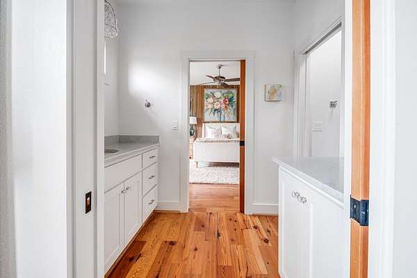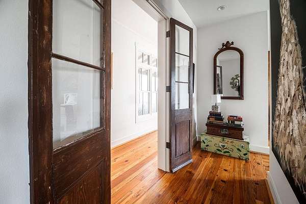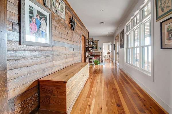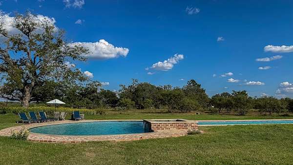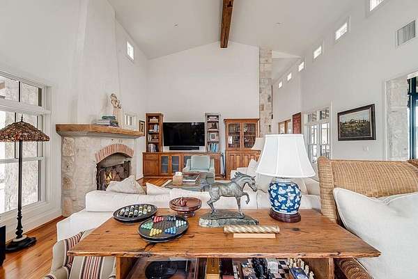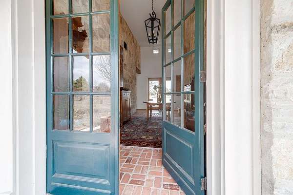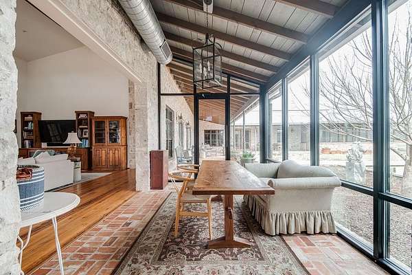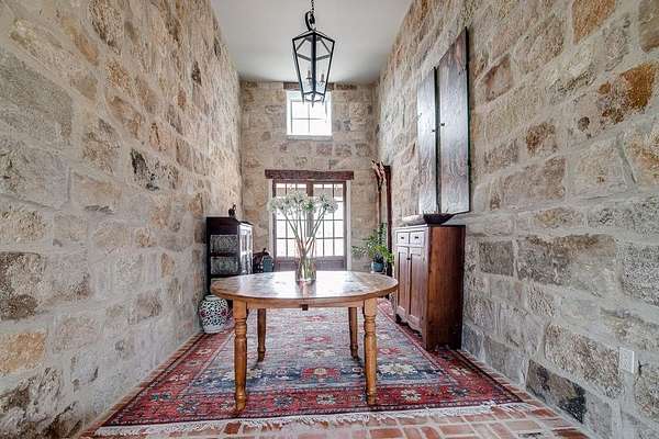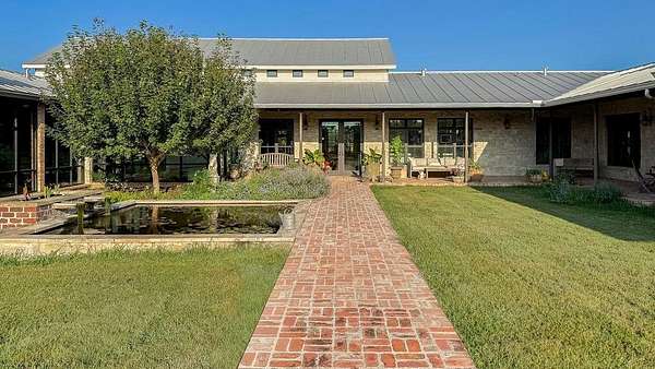 A rare opportunity to own a private Hill Country estate on 7.18 acres just blocks from the heart of Fredericksburg. Designed with exceptional attention to detail and quality craftsmanship, this custom residence blends timeless architecture with thoughtfully incorporated reclaimed historic materials, creating warmth, character, and enduring style throughout. A gated entrance welcomes you to the property, where the home is tucked behind a grove of mature Sycamores, offering an immediate sense of privacy and tranquility. The arrival experience continues inside the striking entry, featuring walls constructed of re-salvaged limestone and reclaimed brick flooring — an introduction to the craftsmanship carried throughout the residence. Vaulted ceilings, reclaimed wood beams, refinished longleaf pine floors, reclaimed brick accents, and a full masonry Rumford fireplace anchor the light-filled living spaces with understated sophistication. The kitchen reflects classic, timeless design with a light-drenched layout featuring a butcher block island, soapstone countertops, Wolf 6-burner range, and walk-in pantry accented with antique details — equally suited for everyday living and entertaining. Just off the kitchen, a sunroom overlooking the patio provides an inviting space to relax, dine, or gather while enjoying views of the surrounding landscape. The primary suite offers a peaceful retreat with a Victoria + Albert soaking tub, glass-enclosed rain shower, dual vanities, and direct access to a large screened-in porch. The home's thoughtful layout also includes a private secondary guest suite, along with two additional bedrooms connected by a well-appointed shared bath, creating comfortable accommodations while maintaining privacy throughout. Outdoor amenities create a private resort atmosphere, including a double lap lane pool with tiled push wall, expansive circular swimming area, spa, limestone fire pit, and beautifully landscaped grounds supported by multiple water sources, rainwater collection, and irrigation systems. Additional improvements include an enclosed two-car garage, separate covered parking for four vehicles, solar panels, aviary, chicken coops, and thoughtfully maintained acreage. With no HOA and a location just moments from Fredericksburg's historic Main Street, this property represents a rare offering where craftsmanship, privacy, and timeless Hill Country living come together in a setting designed to be enjoyed for generations.
