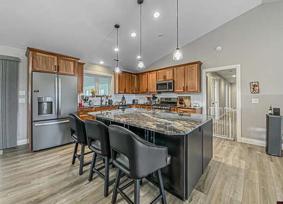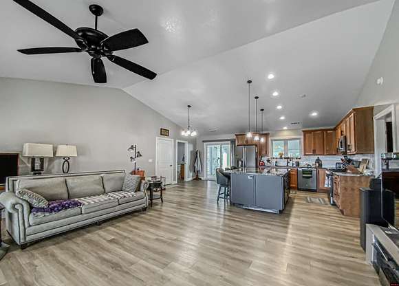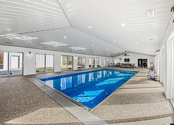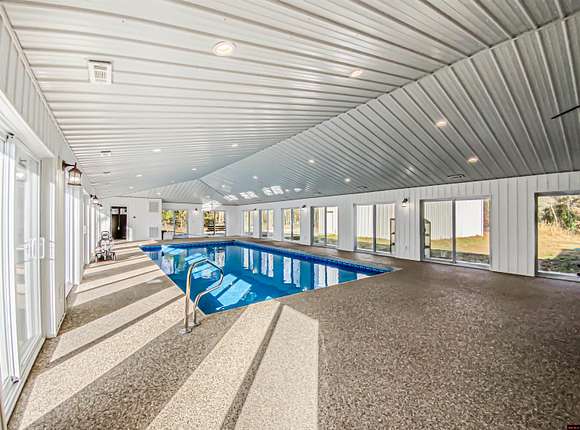 Beautiful custom built home sitting on 41 AC M/L less than 5 miles from town. This home was built in 2022 with many features including, vaulted ceilings in the open living, dinning, kitchen area, large pantry, safe room, large walk in closet, extra storage space, large utility room, bonus room with a sink that offers many possibilities for use, many handicap features, custom step in showers, whole home generator, attached 3 car garage, standing seam metal roof and reverse osmosis system. An enclosed 36x18 saltwater swimming pool is attached to the house offering year-round fun. The pool room is heated and cooled, and the pool is heated and has a remote-control cover for safety. Enjoy your very own 30 x 40 shop building with 2 overhead doors to store all your toys and equipment. In less than 30 minutes you can be at Bull Shoals Lake, White River, Buffalo River, Harrison or Mountain Home.