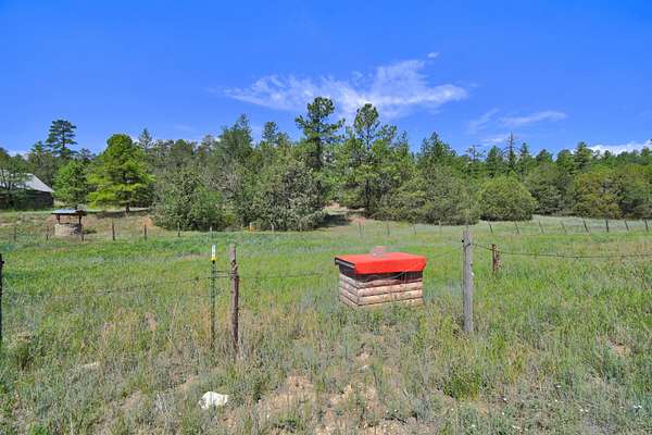 Head south from Tijeras to Raven Rd, go right about a mile and then left on Skyland Rd., continue south on Skyland until you reach the property on the west side of the road. Look for old stone barn