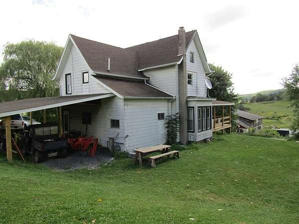Est $4,738/mo5 BR 2 BA farmhouse on quiet road with old dairy barn waiting for some animals to fill it again. The home has had many updates including roof, windows and new front deck all within the last 10 years. The barns have had some work to stabilize them. The OGM's are leased and receiving royalties, with the right offer the rights will transfer.