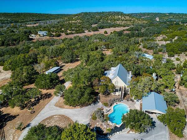 Est $8,386/moDiscover this 18 acre Texas Hill Country Haven with Timeless Charm. A separate Guest House with 535 sq ft is ideal for housing family and friends. This remote retreat also features a 51' x 24' 5-Car Barn with abundant room for vehicles and equipment, Horse Stalls. Unwind on the Covered Porch with sweeping Hill Country Views, Separate Outdoor Kitchen with Fireplace, Gas Grill. Sparkling Pool with Waterfall. Plantation Shutters throughout this inviting Hill Country Home with a Lovely Kitchen, Stone Backsplash, Island with Electric Cook Top. Come experience the quiet, the space, and the freedom for yourself!