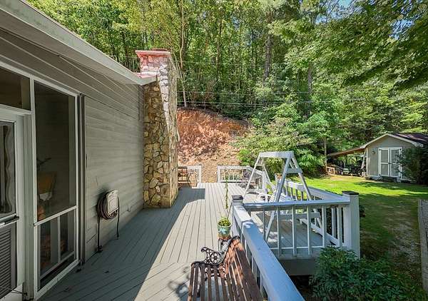 Welcome to the mountains! Nice size home with plenty of room! Year-round views, large, screened porch, 2 bonus rooms for your office, game room or additional sleeping space! Large side deck and brand-new back deck. The main level offers a living room, kitchen and dining space, 2 bedrooms and 1 bathroom. Featuring wood burning stone fireplace, a breakfast bar and large windows overlooking the mountains. The property offers an additional lot, that's perfect for building your garage or possibly another house. Shed/storage building included with washer/dryer hookup and electrical in place. Lake access, hiking and biking trails within 15 minutes. Downtown Bryson City is 30 minutes or less.