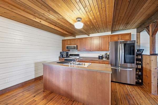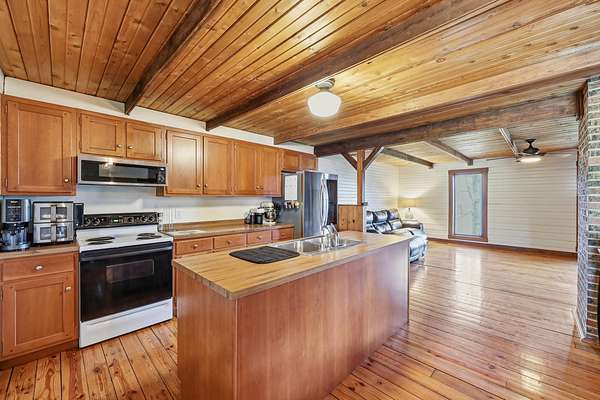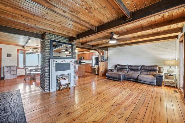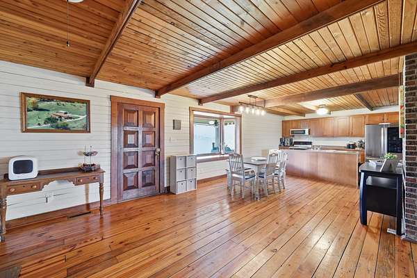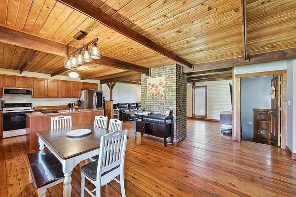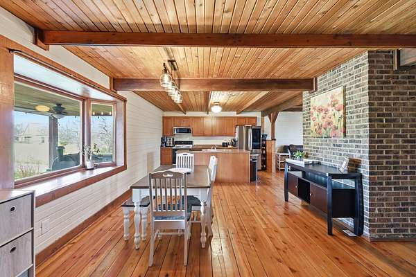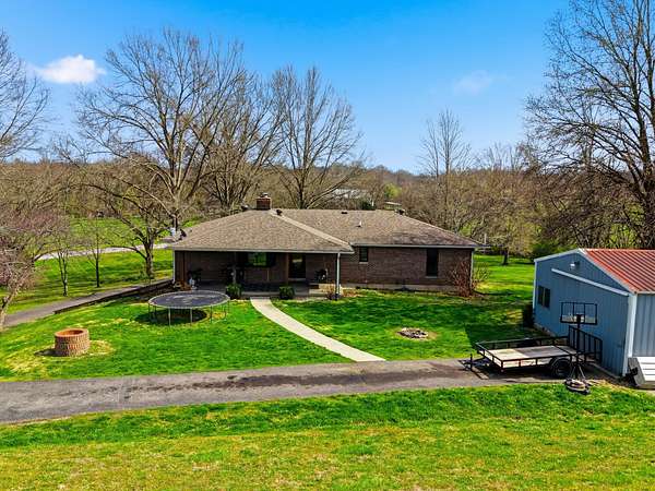 Don't miss this rare opportunity to own 5.55 acres in a prime location just off the Bourbon Trail and minutes from the BG Parkway! This beautiful all-brick home is full of character, featuring exposed beams, wood ceilings, and hardwood flooring throughout the main level. The open-concept living, kitchen, and dining area offers a warm and inviting space perfect for everyday living or entertaining. The main level includes three bedrooms and two full bathrooms, while the fully finished basement provides even more flexibility with two additional bedrooms, a full bath, and a large den and recreational space. Outside, you'll find a detached workshop/garage and plenty of room to spread out and enjoy the peaceful setting. Experience the perfect blend of country charm and convenience-this one is a must-see!