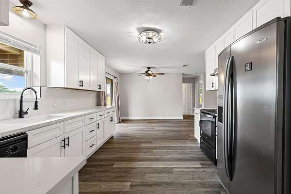 Motivated Sellers! Beautiful Remodeled House on 5 acres! This 3 bedroom, 2 bath, offers the popular farmhouse look! It has new cabinets, paint, Quartz countertops, windows, Luxury vinyl flooring, with tile in bathrooms, and new baseboards throughout! Kitchen has a new farmhouse sink, nice faucet, and subway tile backsplash! The stove was replaced not long ago & the stainless steel fridge stays! The bedrooms are spacious & the Master bedroom has a huge closet with 2 doors. The bathrooms have new cabinets & sinks too! The living room is large & has a nice brick fireplace. The Huge front porch & back patio are both covered. The roof is metal which helps with insurance! The eaves on the sides of the house have new siding. Hot water heater is about 1 yr old and the attic insulation is new! The property is completely fenced with new pipe fencing across the front, several pipe gates, & new barbwire down the sides and back. There is an RV hookup & a nice size storage building or workshop! This one has it All!