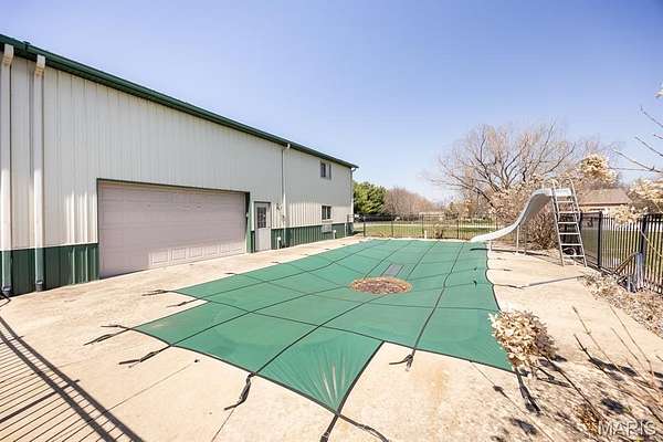We have all driven past this home and thought WOW! And it is a huge wow. Almost 9,000 sq ft with a 5,000 sq ft pole barn and an in ground pool on over 3 1/5 acres. Where to begin? The grand 2 Story open foyer features curved, double staircase. Leading to the unique bar with a see-through fireplace and walk out to the fabulous backyard. The breakfast area shares the fireplace. The spacious kitchen includes plenty of cabinets, granite tops, a walk-in butlers pantry and more. There is a formal dining room with a fireplace. You will love the large laundry room on the main level, an office and a spacious primary suite with fireplace, large corner whirlpool tub and separate shower. Upstairs there are 3 additional bedrooms. 2 share a Jack and Jill bath. The 3rd is it's own suite with a full bath and walk in closet. A completely finished lower level is set up for a daycare. A little remodel can make it your vision. The inground pool features a slide and is fenced in. I will need some repairs to get it up and running but it will be worth it! It's next to the 48x102 pole barn. This special place is equipped with 2 kitchens and 2 bathrooms!. Party's will be happening here, The garage doors are made for the self employed person with heavy equipment or the RV people with campers and boats. Don't miss this chance to own your piece of paradise. Buyer to verify all information,