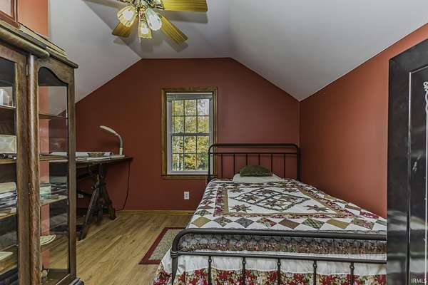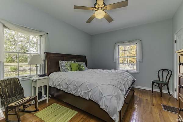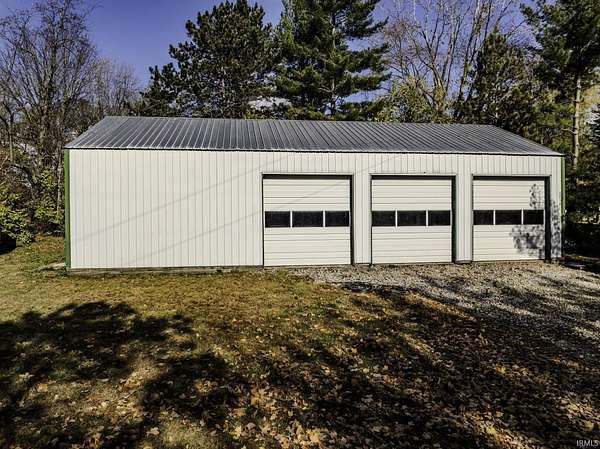 Absolutely perfect! This is the home you have been waiting for! Beautifully situated on a 3.8 acre lot looking out over the rolling front yard, this home will be your peaceful retreat! As a bonus, this property also features a huge 30x56, 3 car pole barn/ garage/ workshop. The home is larger than it looks. The main floor features a huge living room, large dining room, spacious kitchen, large bedroom and full bath. Located just off the living room is the most perfect screened in porch and deck. Upstairs there are two additional bedrooms, a bonus room, and half bath. The basement is home to the large family room, lots of dry storage space, plus the laundry area/ mudroom area with shower - perfect for cleaning off after working outside. This home has been meticulously maintained and features tons of original charm including beautiful hardwood floors, built ins, and a cozy fireplace. A convenient 1 car garage is attached to the house. Outside there is a very nice 30x60 garage with electricity, and water. Blue car lift is negotiable. There is an additional 22x13 barn that is perfect for storage. This property offers a huge, private backyard perfect for bonfires and get togethers. This property gives you tons of peace and quiet and privacy but is less than 5 mins from the Albany Golf Course and 15 mins to Muncie.