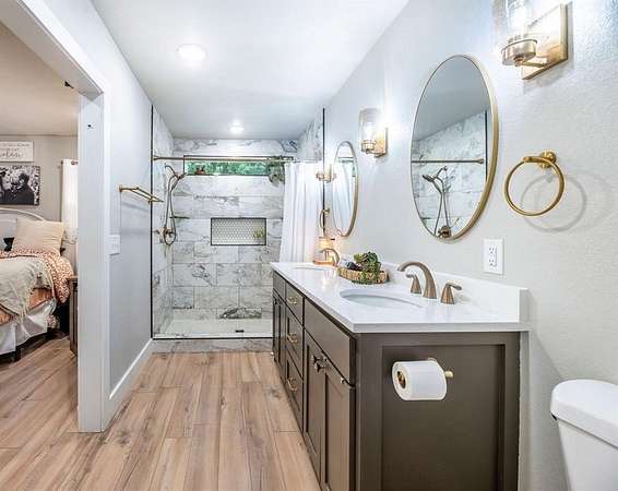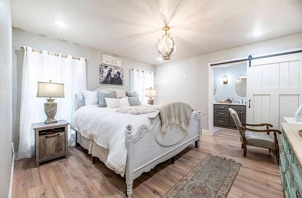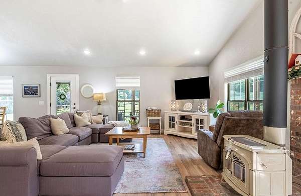 Seller is willing to Split Land. This AGENT owned property has 4+/- acres, 2321sqft, 2 bedroom/2 bathroom,700+sqft of heated/cooled flex space that could be converted to a bedroom. Textured metal roof, spray foam insulation, commercial grade mini-splits, and a wood burning stove! This all electric home features a 6' tub and custom tiled dual head shower with quartz countertops in both bathrooms. A deck overlooking the pond and woods, a porch swing patio view of the valley, a grill patio for entertaining, and 1ac parceled piece of land with power and water for additional fun or investments.