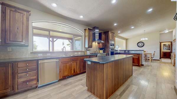 MLS# 287712 Experience the beauty of country living with this serene 15.37-acre property, surrounded by rolling green pastures and panoramic territorial views. This 4 BD 3 BA home offers a perfect blend of comfort, functionality, and natural beauty. Step inside to a formal living room entry with vaulted ceilings and laminate wood flooring flowing throughout the home. The central kitchen is designed for both everyday living and entertaining, featuring a large island, professional-grade stainless steel appliances, two pantries, and a spacious formal dining room. The inviting family room showcases a wall of windows framing sweeping views, along with a cozy freestanding wood stove. A sliding door opens to the full-length covered deck, creating a peaceful spot to unwind while soaking in the surroundings. The split-bedroom layout provides privacy, with the primary suite offering a dual-sink vanity, custom-tiled walk-in shower, soaking tub, and generous walk-in closet. Secondary bedrooms are connected by a convenient Jack-and-Jill bath, while an additional bedroom has access to a hall full bath. The laundry/utility room is thoughtfully placed off the finished 3-car garage, which includes abundant storage space. Outside, the land is equally captivating featuring a Squab Farm producing substantial lease income. A pond, barn, and multiple outbuildings complement the property, providing a full set-up for livestock and endless opportunities for hobby farming, recreation, or simply enjoying the peaceful setting. This is more than a home--it's a lifestyle. A rare opportunity to own a private country retreat with room to breathe, grow, and enjoy the best of rural living.