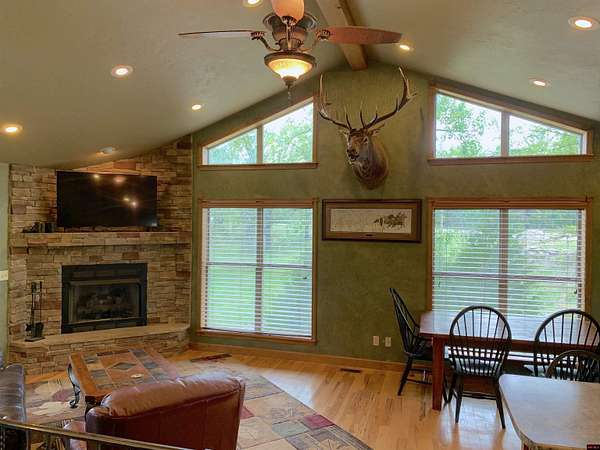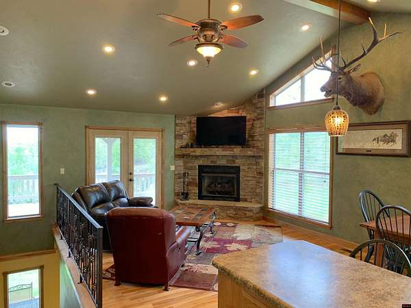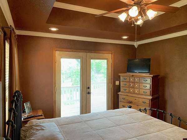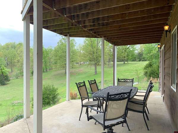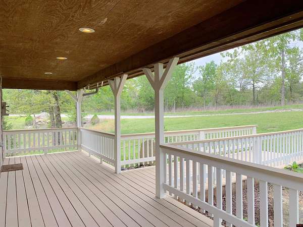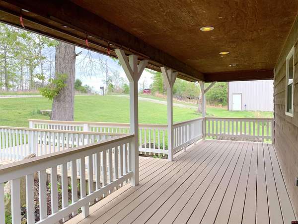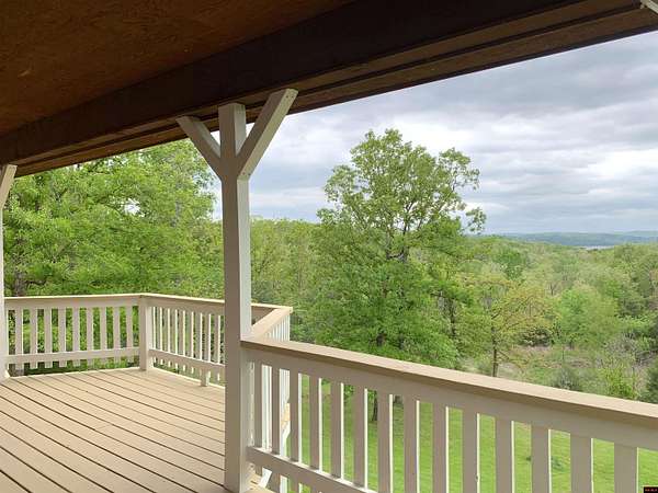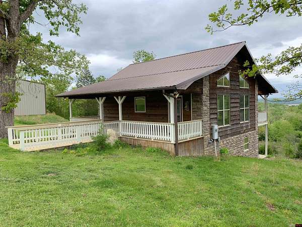 Hand Cove-Beautiful Cedar/Stone Home, quality built in 2010 with a breathtaking view, full basement on 3.77 Acres m/l, 30’ x 30’metal shop building with 12’ doors to store your boat and accessories, less than 2 miles to Woods Point Boat Launch on Lake Norfork. This exquisitely designed home features a great room plan with vaulted and tray ceilings, cozy stone gas log fireplace, hardwood and tile flooring, and clerestory windows that allow for an abundance of natural light. Main level has a huge, covered deck to enjoy the distant lake view and valley. The tile shower and whirlpool tub will not disappoint. The lower level has a family room with a built-in desk, cabinets and refrigerator, the downstairs bedroom and FR have access to a private patio area. All appliances are included. Only .3 of a mile to paved roads.