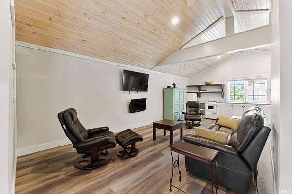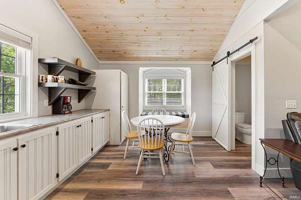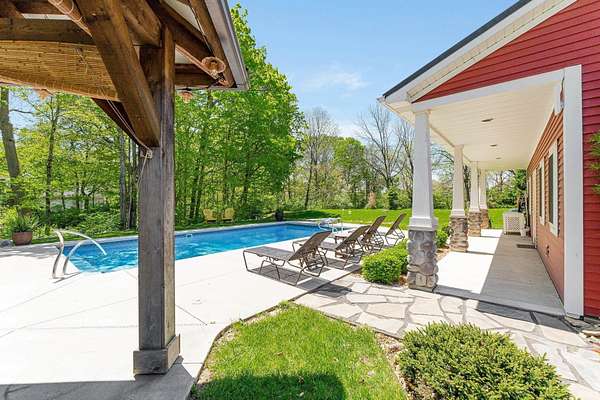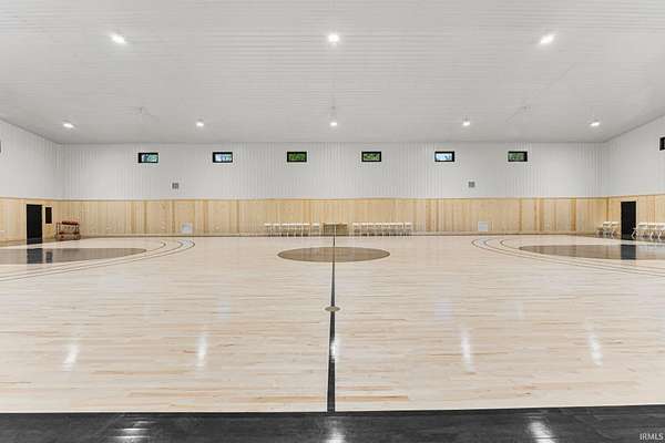 Experience resort-style living in this one-of-a-kind two-story home, perfectly situated on almost 4 private acres in Southwest Allen County. This extraordinary property offers over 4,600 sq feet of livable space with divided living quarters. The ultimate in recreation, relaxation, and luxury--starting with your very own full indoor basketball court, all housed within a massive 60x120 outbuilding that's connected to an impressive poolhouse-style retreat. This versatile space also includes a fully equipped fitness center, game room, two kitchen areas, a dining area, two full baths, and private guest quarters with two bedrooms--perfect for entertaining or extended stays. Step outside to your personal oasis, where a sparkling in-ground pool, built-in bar under a shaded gazebo, and a stamped concrete patio invite you to relax and unwind. You can even enjoy a peaceful stroll down to your very own private pond--just one more element of the serene lifestyle this property offers. Inside the home, you'll find a beautifully designed interior with abundant natural light and flowing open spaces. Enjoy two spacious living areas, three bedrooms, and three full bathrooms, including a luxurious primary suite in a separate wing of the home. An enclosed wrap-around porch offers year-round enjoyment with stunning views of your expansive property. From the unmatched amenities to the peaceful setting, this home delivers a lifestyle you simply won't find anywhere else. Opportunities like this are incredibly rare--don't miss your chance to own a property that truly has it all!