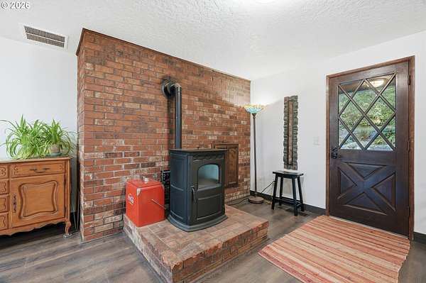 - Forced Air, Heat Pump, Wood, Wood Stove