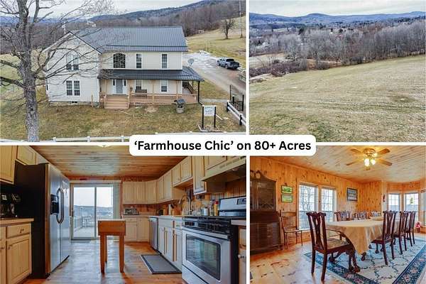 Modern farmhouse chic set on 80+ acres! With 3400 square feet of warmth and character, this farmhouse offers the perfect blend of privacy, recreation and the possibility of income! Featuring a cozy fireplace, a grand living room and a seamless layout ideal for everyday living this can be your forever home or a second home with savvy investment. The kitchen is spacious, inviting and provides ample storage; it leads into a dining area that's perfect for gatherings or quiet dinners. Downstairs, there is also a very large room convenient for anyone needing a first floor bedroom. The wood accent walls and ceilings bring a rustic charm into this wonderful space! Upstairs, there are five more bedrooms, including a larger room with en suite full bath. There is an additional full bathroom on this level as well for comfort and convenience. Relax and take in the breathtaking views from the wraparound deck, perfect for morning coffee or evening entertaining with friends. A 2-car garage with an attached workshop provides ample space for vehicles, equipment, or hobbies. Outdoor amenities include a large fire pit, abundant wildlife, and established recreation trails throughout the property - ideal for hunting, hiking, and outdoor enjoyment. Recent updates include a new metal roof and remodeled downstairs bathroom. Currently operating as an Airbnb/Vacation rental and is just 10 minutes from Cooperstown Dreams Park! This property presents an opportunity to own a rural retreat with both lifestyle and investment appeal.