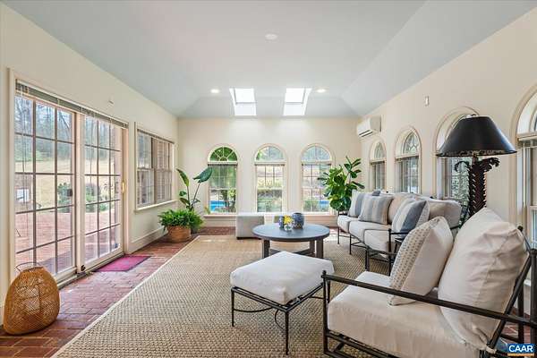 Privately sited on 21 landscaped acres, this stately brick residence blends classic architecture with modern comfort. The home offers five bedrooms, seven full and one half baths, soaring ceilings, refined moldings, and four fireplaces. The main level has been thoughtfully refreshed with new paint throughout, updated fixtures & hardware, and striking new front doors that welcome abundant natural light. A grand living room anchors the home, complemented by a serene home office, expansive primary suite, and guest quarters with loft. The finished walk-out lower level features a wet bar and wine cellar, ideal for recreation and entertaining. Outdoors, enjoy a swimming pool, clay tennis court, mature landscaping, and sweeping lawn. A generator and garage enhance everyday function. An adjacent 21-acre parcel is available only with the main house—an estate offering privacy, scale, and refined living just minutes from town.