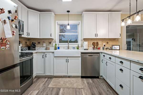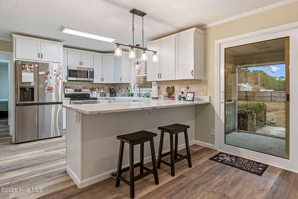 Nestled on a generous lot of over 2 acres, this residence offers the privacy of a country setting without sacrificing proximity to the best of Brunswick County. Experience true flexibility in this spacious 3-bedroom, 3-bathroom brick home. The heart of the home features a recently renovated kitchen, boasting ample cabinetry and a flood of natural light through window and sliding glass door alike. The breakfast nook makes for an idea spot to start your morning! With distinct living areas-including a formal dining room, a cozy family room, a traditional living room, even a gorgeous year-around peaceful retreat of a sunroom-there is a dedicated space for everyone. While the 2-car attached garage provide plenty of storage for beach gear and vehicles. Outdoor enthusiasts will love the expansive backyard-maybe there's a garden in your future? Or maybe you just want the extra storage? Located just minutes from Hwy 17, you are a short trip from the sands of Holden Beach and the local shops and dining of Shallotte. Day trips are also a option as you will find yourself to be centrally located between Wilmington NC, and Myrtle Beach SC.