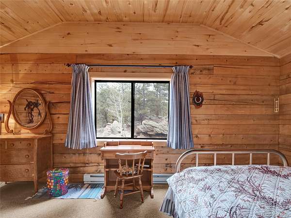 Welcome to your next beautiful mountain retreat, located in the serene surroundings of Lake George, Colorado. This unique log cabin boasts 1 bedroom, 1 full bathroom, and is situated on 5 acres of picturesque land. Privacy is paramount here, offering a peaceful escape unlike any other! Upon arrival, you'll be captivated by the spacious lot adorned with unique rock formations, and your very own private deck, perfect for summer barbecues. Step inside to be greeted by vaulted ceilings and stunning woodwork throughout the entire home, creating a warm and inviting atmosphere. Whether you're seeking a permanent/vacation home or an investment opportunity through short-term rentals, this property has it all and more! The layout flows effortlessly, and a wood-burning stove ensures cozy Colorado winter nights. With its own household well, this property is truly move-in ready! Located just minutes from Highway 24, this property offers prime access to all the area has to offer. Approximately 10 minutes from Eleven Mile Reservoir and Spinney Reservoir. Don't miss your chance to own your very own mountain paradise. Schedule your showing today and step into a world of natural beauty and tranquility!