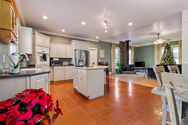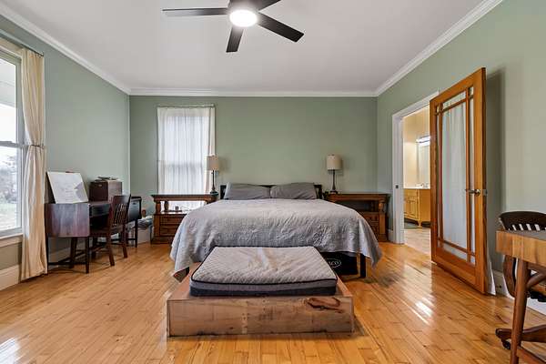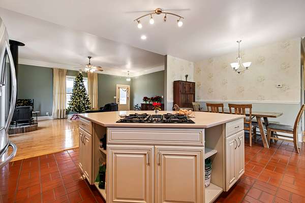 Stunning 42-acre farm offers a rare blend of flat, fully usable acreage provides an ideal setting for farming or livestock featuring a shop and barn. The single-level ranch home features brilliant wood floors, new HVAC installed December 2025 - wood burning stove - gourmet kitchen with island - elegant primary suite with soaking tub and walk-in closet - new encapsulated crawlspace and breathtaking views from the two-tier deck - Barn includes 5-6 stalls, tack room, water, and electricity--perfect for equestrian or agricultural use with 8 Paddocks Cross-fenced with Hi-Tinsel wire. The impressive shop of 50 x 80 offers 16 ft ceilings and 14 ft entry doors - built in air compressor - and additional 30x50 shop with concrete flooring - includes a private office area plus an equipped one-bedroom apartment with full kitchen, full bath, living room and laundry - ideal for guests, caretakers, or extended living. Barn and shop are serviced with water, electricity with the shop having a separate septic meter, enhancing flexibility and operational efficiency. The shop includes a Commercial grade roof, siding, and steel walls which are double insulated. Don't miss out on this rare opportunity!