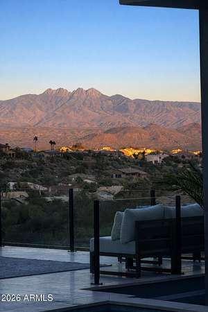 Your private resort awaits with this stunning custom ranch 5 bedroom, 5.5 bathroom luxury estate designed for entertaining and everyday comfort in the coveted Eagles Nest community. First impressions begin from the inviting gated courtyard with fireplace to the great room with soaring 20' ceilings. The chef's kitchen boasts top line 36'' Sub-zero and 36'' freezer, 48'' Wolf stove, and sub zero brand specialty Cove dishwasher. A hidden pantry with additional Cafe refrigerator and built-in microwave extend your kitchen workspace. Gather your friends and family at the expansive 15' quartzite island or enjoy serving through the 8' awning serving window to the outside bar from the wet bar equipped with beverage fridge and ice machine. Brushed champagne gold fixtures, quartzite counter and flat panel custom cream cabinets add elegance to function throughout the home. The split floor plan offers a primary suite retreat with fireplace combed limestone and elegant bathroom designed with dual vanities, lit mirrors with defrost, and custom Classy closets with secondary laundry. Find sanctuary in the free standing tub in the wet room with dual shower heads. In the opposite wing, each generously-sized secondary bedrooms boasts mountain views and its own en suite with LED backlit floating vanities. The 5th room is set up for a personal gym yet can be used as a bedroom with it's large closet, picture windows, and french doors to the backyard. Separate office or flex space with French doors to rear courtyard as well. Open the 25' living room sliders to create the seamless Arizona lifestyle as you invite the outside in. The backyard is an entertaining showpiece with a well-equipped Ramada outdoor kitchen, pristine diving pool with baja shelf and swim-up bar, putting green, and integrated patio heaters and misters added for comfort. In addition to the main living areas, guests will love the luxury attached casita with full kitchen, perfect for extended stays or multigenerational living. With 16' sliders, additional 8' awning serving window, and bedroom with en suite, your guests may be wanting to stay longer. Enjoy a 4-car garage with classy marbled garage floor coating for car enthusiasts. Capture the picturesque Four Peaks, Mazatzals, and McDowell Mountain views from either of 2 view decks as you are immersed in the beauty of the surrounding preserves and city lights in the coveted guard-gated Eagle's Nest neighborhood. It's the lifestyle you've been waiting for all on 3 hillside acres surrounded by natural desert beauty in this International Dark Sky Community. The 1-acre neighboring lot 15 is available for purchase to increase your estate. INTERIOR HIGHLIGHTS NOT TO MISS: *Porcelain tile throughout and soft white and neutral pallet of tiles *Custom Classy closets in every bedroom *Extra deep cooled 4-car garage with custom marbled epoxy flooring, custom cabinetry, and beverage refrigerator *Bonus room between primary suite and casitas, currently used as a salon studio and includes private patio. *5 heat pump systems/5 furnaces *3 tankless water heaters *Whole house water filtration system *Upgraded bidet ToTo toilets *Control 4 Smart Home system controls audio and video *2 Ring Cameras w/spotlight on driveway *Delta brand glass cleaners at all kitchen/bar sinks EXTERIOR HIGHLIGHTS INCLUDE: *Well-equipped outdoor kitchen with Blaze grill, ice maker, and prep sink *Custom outdoor blue granite bar top *2 outdoor fireplaces with large fire pit creating perfect ambiance *2 heaters and a chiller for the 10' diving pool for year-round use *2 observation decks to take advantage of watching the sun and moon rising over the mountain range *6 infrared patio ceiling heaters allow outdoor living all year long *integrated mister system *3 acre hillside lot with natural desert landscaping to preserve the community aesthetics separated from neighboring lot by a large natural wash