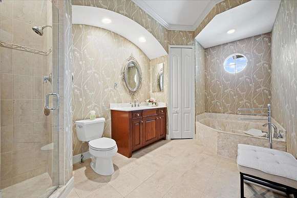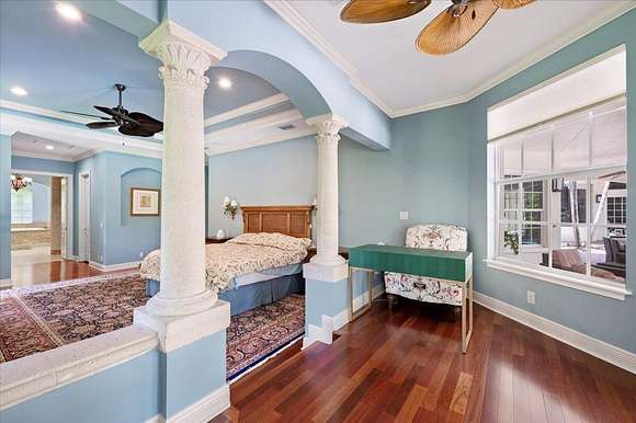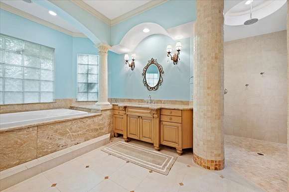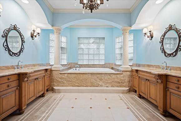 - Bar, Built-In Shelves, Closet Cabinets, Entry Level Lvng Area, Fireplace(s), Foyer, French Door, Kitchen Island, Laundry Tub, Pantry, Roman Tub, Second/Third Floor Concrete, Split Bedroom, Volume Ceiling, Walk-In Closet, Wet Bar