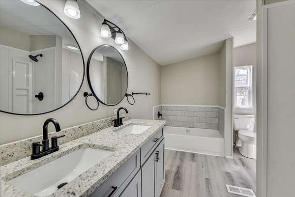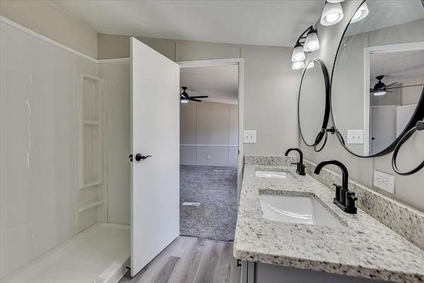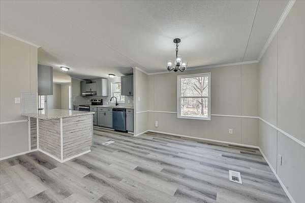Step inside the beautifully remodeled 4-bedroom, 2-bath manufactured home, where modern style meets comfort. Every detail has been thoughtfully updated, from the Luxury Vinyl Plank Flooring in the living areas to the plush carpeting in all bedrooms, creating a warm and inviting atmosphere. With two spacious living areas and a separate dining area, there's plenty of space to relax and entertain. There's even a ''secret space'' to enjoy. The kitchen has been completely transformed with new cabinets, sleek granite countertops, and stainless steel appliances, perfect for preparing meals in style. Additional upgrades included a new heat pump, water heater, lighting fixtures, and vanity cabinets, ensuring efficiency and comfort. A brand-new roof provides peace of mind, while the home's elegant, soft gray tones add a touch of sophistication. Completing the house is a convenient laundry room. The move-in-ready home is a must-see. Don't miss the chance to own this stunning, like-new property!