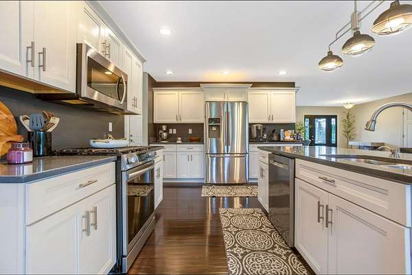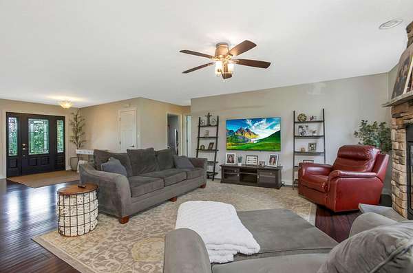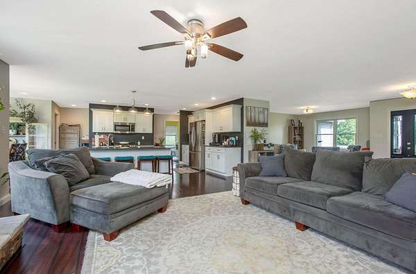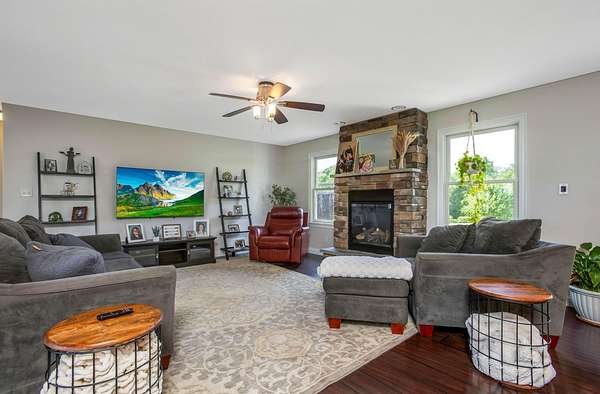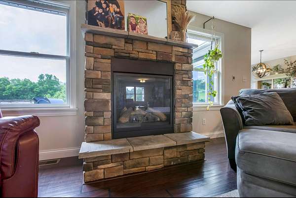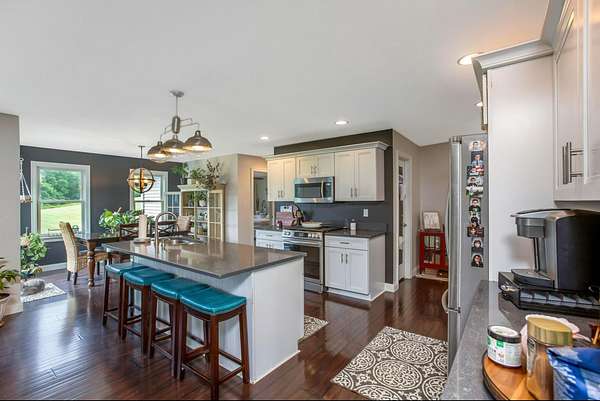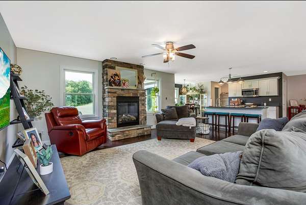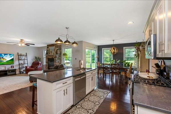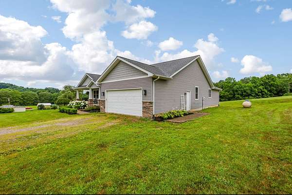 Welcome to your three bedroom two bath dream home built in 2013 situated on just over four acres. First floor has a breathable open concept with an abundance of natural lighting. The spacious eat -in kitchen is a chef's dream with stainless steel appliances and a large island. Your choice of a formal dining room or sitting room. Off the kitchen you'll find a generous owners suite and bath, with a walk in closet, conveniently connected to the vast laundry room. As you flow through the living room with a cozy gas fireplace you'll find two more sizable bedrooms and bath. The walk out basement offers plenty of room for entertaining or extra living space.