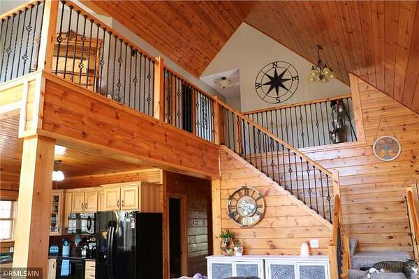 The perfect dream come true, drive in on the paved driveway with the canopy of trees overhead. When you reach the home the yard opens up with a large concrete area between buildings. The beautiful log home with the open porch welcomes you in, large windows and French style patio doors to allow you to enjoy the beautiful yard and woods while sitting inside. When you're outside take a walk down the partially paved path to the creek, it's a nice way to relax, or maybe the family rec room off the garage. The home is a open floor plan of the home allows you to enjoy the beautiful woodwork, the fireplace, staircase all from one spot. A spacious primary bdrm on the main level, with private bath and walk in closet. The pole shed is 30 x 48 with electric service and concrete floor. There is a generator included with the sale. The septic system has been certified as of the fall of 2025.