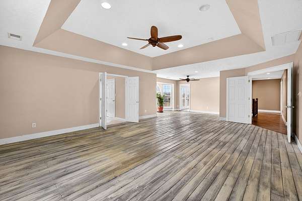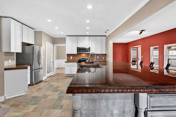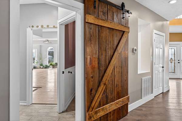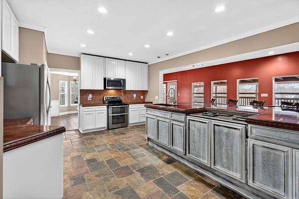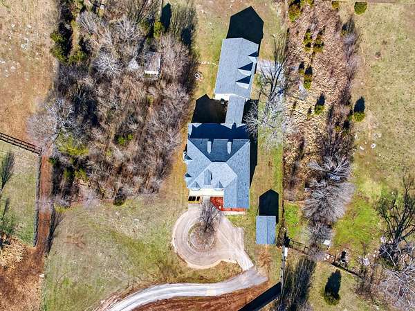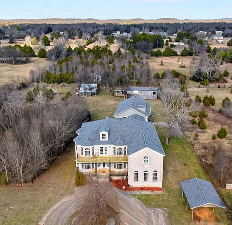 FABULOUS property on over 5 acres!!! Almost 10,000 square feet under roof, some footage not counted as finished space during time of purchase. Full basement in main house, Apartment/In Law quarters over the 4 gar Garage...these 2 areas are not counted in current footage, but have been utilized as such easily......Front Entry leads to refinished staircase to Upper Level. Adjacent to the Entry is the Sitting Room/Living Room with hardwood laminate flooring & bay window. Formal Dining Room is located through the Sitting Room, and has trey ceiling with crown moldings, and a side bay area. Kitchen has had renovation with slate tile flooring, and absolutely huge island with oak/mahogany stain. Also offered is a walk-in pantry, recessed lighting, double sink....Separate Office with french door system and built-ins. Remodeled 1/2 Bathroom and Laundry Room are also convenient to the Kitchen and open Den/Family Room. Den is cozy with a wood stove and ceiling fan, and has direct access to the Basement level, back staircase to Upper Level, and back access to the covered decks. An additional room adjacent to Den is an oversized Main Level Bonus/Gathering Room, can accommodate large gatherings. Upper Level features 4 Bedrooms, one of which is the Primary bedroom. Primary is huge and has hardwood plank flooring, recessed lighting, trey ceiling, and En Suite Bathroom. Primary Bathroom with double vanities, jetted tub, and separate shower. Basement Level has Theatre Room, Game Room, Storage Room, and Full Bathroom. Back decking adjoins with Apartment above a 4 car detached Garage, with Apartment which including a Full Bathroom and Kitchen/open to Living area. This all sits on 5.26 acres, with amenities that include 2 Barns, fenced Garden with drip irrigation, Fruit trees (peach, pear, fig, plum), compost areas, Greenhouse, chicken house, and is fenced from all neighboring properties. A lot of property and footage for the money, selling as-is, and is priced under value accordingly.