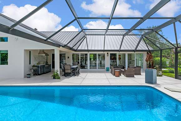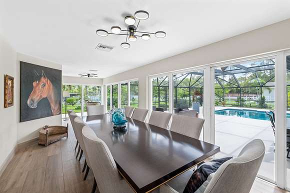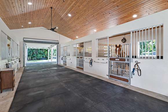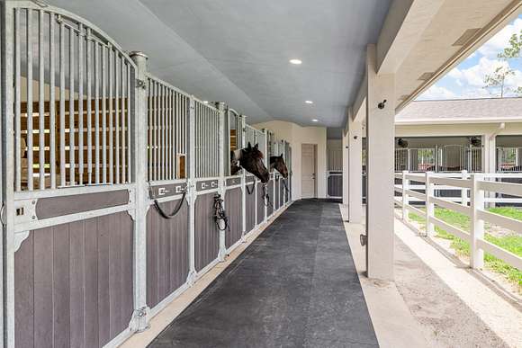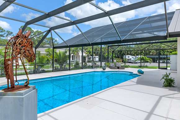 Professionally renovated and landscaped 5-acre farm includes 5BR, 4BA with pool in the amazing quiet Fox Trail Equestrian community. The farm includes 2 barns totaling 20 stalls and is only 12 mins to WEF. Everything is brand new for the discerning owner and pampered horse including 10 large, raised paddocks. Enjoy tree covered paved roads with over 20 miles of canal view horse trails. This 5-bedroom. 4-bath pool home is all new inside and out with impact glass, metal roof, stunning kitchen with rare quartzite countertops, induction cooktop, double dishwashers, refrigeration drawers, and two microwaves. From the studs out all new baths, flooring and floor plan. Enjoy upgraded heated saltwater pool, new outdoor kitchen and Sonos sound system with whole house generator.