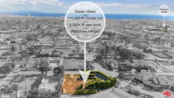 Rare 11,000 square foot mostly flat and elevated corner lot near the Palisades Village. The property is cleared and ready for brand new construction of a large 3-level new home - upwards of 9,000+ square feet under current building codes (not in the coastal commission zone). 14643 Whitfield Ave. sits above the Alphabet Streets and a new construction home will have breathtaking panoramic ocean views and a spacious backyard on its larger-sized lot. Additionally, this corner, coupled with a short road in the back, creates flexibility in designing the exact location of a garage. The property resides just moments from the Palisades Village known for boutique shopping and award-winning restaurants; top-rated local schools, scenic hiking/mountain biking trails, bike paths, and world-class beaches.Adding to this unique offering, this property was last on the market 65 years ago. This is not simply another Pacific Palisades land sale; it is a chance to claim a piece of Palisades history that is nestled within the coveted Chautauqua Heights subdivision, celebrated for its expansive lots and iconic ocean views. The previous/original home was the 53rd house ever built in the Palisades back in 1924, a residence cherished for generations. Its story speaks to permanence, heritage, and the timeless allure of this coastal enclave. And now it's ready for the next chapter and will be part of the resurgence of the Pacific Palisades.EPA (Phase 1) remediation & debris removal (Phase 2) are both complete. The foundation has also been removed to prepare for new construction. New home builds are well underway in the neighborhood, with the Caruso Village set to reopen in 2026. Some schools are already back and some businesses are reopened, and others are slated to reopen. Once complete, the Pacific Palisades will be more beautiful than ever before as it's still one of the most highly desired coastal enclaves in all of California.