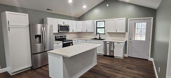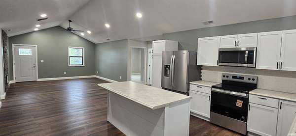 Welcome to your brand-new dream home nestled on just over 8 scenic acres! This beautifully constructed 4-bedroom, 2-bath home offers nearly 1,800 square feet of thoughtfully designed living space with modern finishes and an open, airy feel. Step inside to a spacious open-concept layout highlighted by stunning cathedral ceilings that create a bright and inviting atmosphere. The kitchen features sleek stainless steel appliances, ample cabinetry, and a functional layout perfect for both everyday living and entertaining. This all-electric home provides efficiency and simplicity, with quality construction throughout. The split-bedroom floor plan offers privacy, while the primary suite includes a comfortable retreat with a private bath. Enjoy the peace and privacy of country living with plenty of room to roam, garden, or even add a shop or barn. Whether you're looking for space, style, or a quiet setting, this property checks all the boxes.