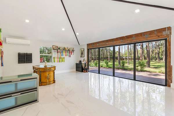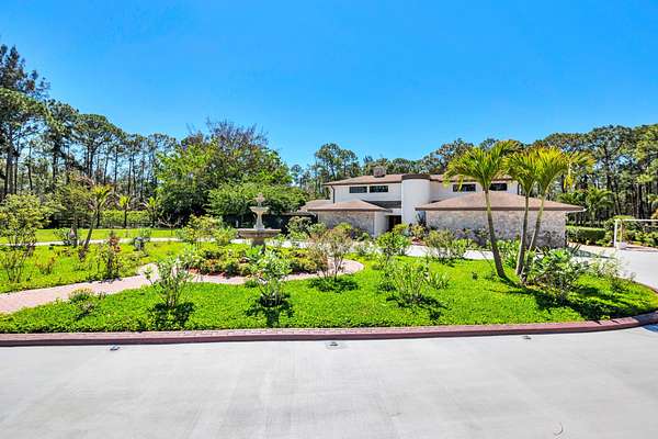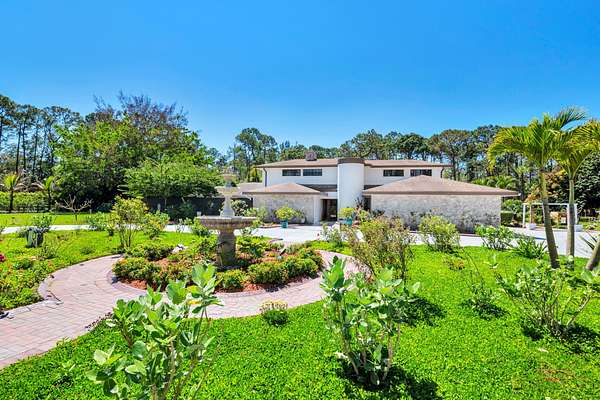 All sizes approx. Welcome to your 5 acre picturesque park like estate! This private custom built compound has been recently renovated with luxury in mind! Once through the decorative electric gates the paver and cement drive will escort you along the lushly landscaped yard to the welcoming impact mahogany front door! Need lots of room? This one has a space for everyone! 6 bedrooms, 5 Full bathrooms and 1 half bath! Resort style pool & summer kitchen. A separate guest cottage is just under 1000 sq ft. Family room a has soaring 17ft ceiling with clerestory windows and sliders that allow the natural light to pour in! Recently renovated through out! Detached home office, over the top landscaping , lush green turn outs for horses! PLEASE SEE ADDITIONAL REMARKS The renovated and redesigned kitchen has a center island cook top with seating that will allow conversation while cooking! An abundance of beautiful white cabinetry, wolf and subzero appliances, quartz counter tops, a true culinary experience. Formal dining room is large enough to fit a table for 10-12! A floor to ceiling stone fireplace, views of the pool and patio, clearstory windows all add up to make this a place for all your holiday gatherings! A formal or informal living room can be a work from home room, exercise room, kids play room, home school room or craft room! A newly added theatre room! Primary bed and bath is a private mini retreat! Located away from all the other bedrooms makes this a quiet place to relax with a secret garden! Primary bath has been updated completely with travertine marble! Floor to ceiling seamless glass shower with multiple shower heads! His and her vanities with lots of storage! His and her walk in closets have California Closet built ins! Sliders in primary bedroom spill on to the pool and patio! All bathrooms have been updated, all additional bedrooms are oversized with great closet space! All have crown molding, new marble flooring and fresh paint. Bed and bath number five is a second master suite, very private as it is encompasses the entire second story! This suite offers a stone fireplace, bath/seamless shower. A private balcony with a sunbrella sunshade! Grab that glass of wine and watch the sun set from this balcony! Large laundry room has tons of storage, a new sink and shelving! A beautiful renovated guest cottage will have your guests staying in luxury! A home office that will have you working from home and enjoying every minute! The resort style pool and patio the oversized screened enclosure has been been updated and renovated! Aqualink saltwater pool. Custom 40X20 heated pool and spa, sunbathing shelf and a rock waterfall! 68 foot long patio done in sand color pavers! Outdoor shower, Outdoor party bar/kitchen will be a fun place for all! Built in grill, refrigerator, outdoor TV! Complete impact windows and doors, both garage doors are impact rated, Mahogany front doors are also impact rated! Full house 40KW Generac Generator services house and guest cottage. Entire roof including skylight was replaced in 2015 Four A/C units Freshly painted, wood plantation shutters throughout, custom barn door entry to guest bedrooms, garage has storage system installed Automatic gate entry, completely paved driveway with lighting! Mounts botanical gardens has nothing over this property! Every plant you can imagine all placed with purpose and intent! A must see! Custom landscape lighting, sodium lights on the corners of home. three wells, two sprinkler systems, auto watering for potted plants, underground water, grass areas have pop up heads. garden area, state of the art chicken condominium! Grassy horse turn outs! Fruit trees include, mango, starfruit, mulberries, bananas and citrus. Property is completely fenced. Firepit done in paver bricks, horseshoe pits, playhouse and playground area! The wonderful community of Caloosa is an equestrian community that consists of 350 5 acre home sites in Palm Beach Gardens. Fifteen minutes to Fla. Turnpi