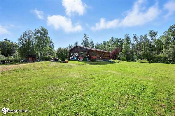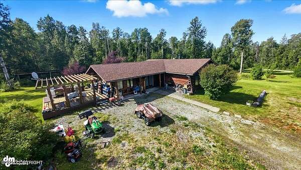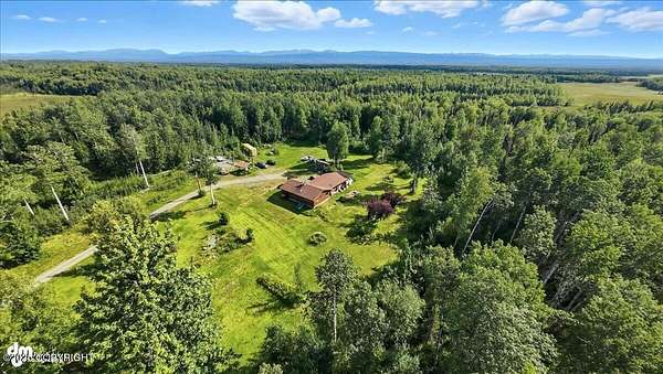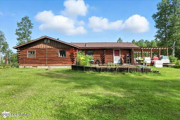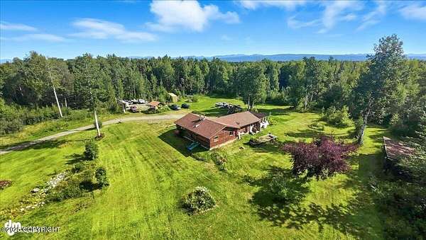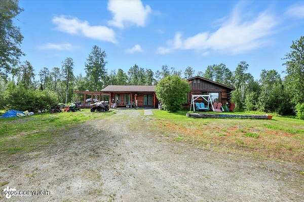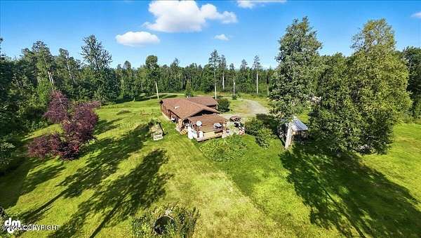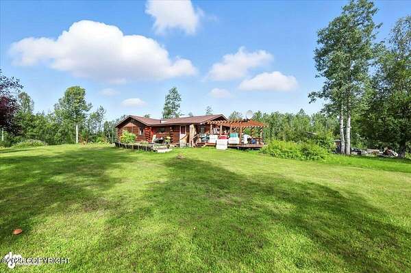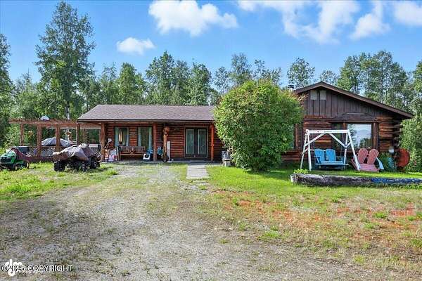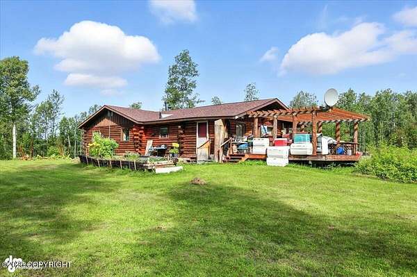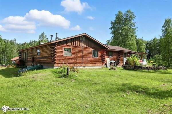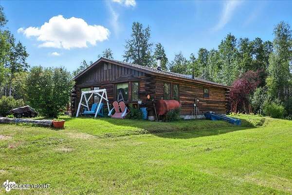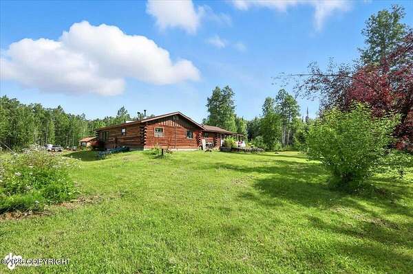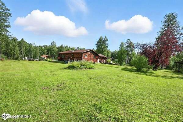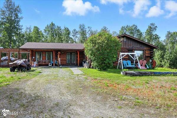 Est $2,112/moLog ranch home with a full 1,300 sf basement. 12 ACRES with a 100 yard shooting range.!! Flat land for building more homes or cabins. This home is the real Alaskan living style with no neighbors in site. Come call in the moose from your front porch!