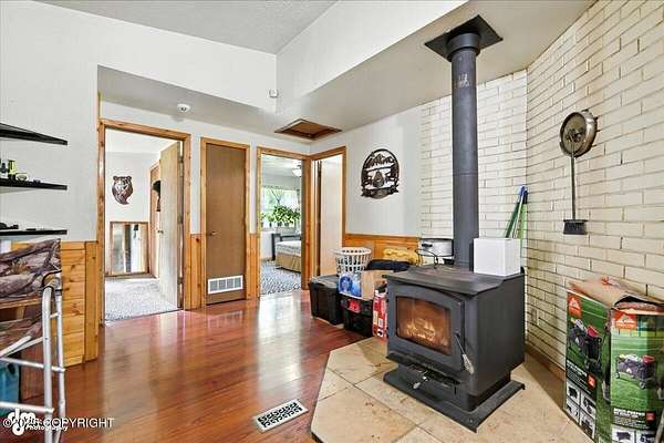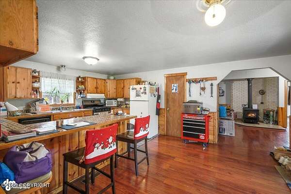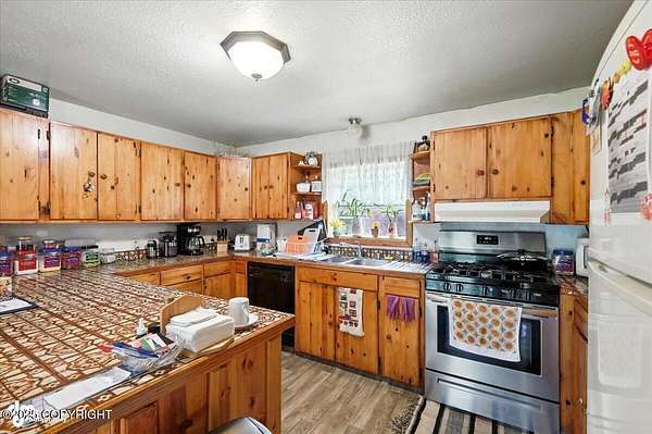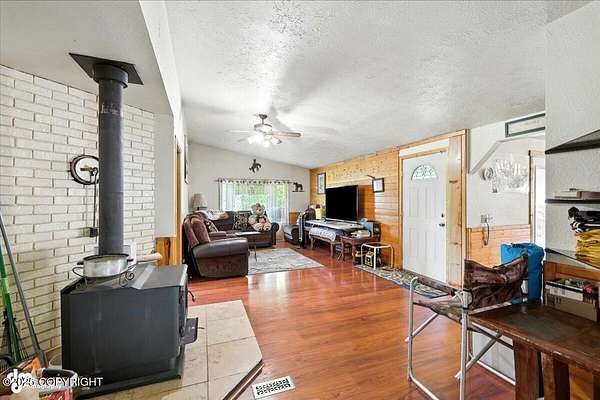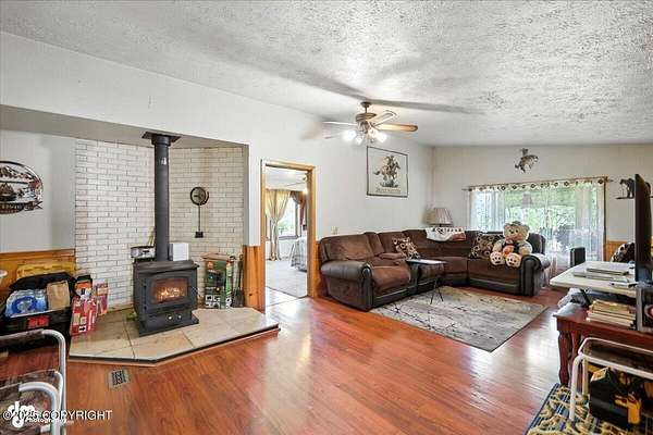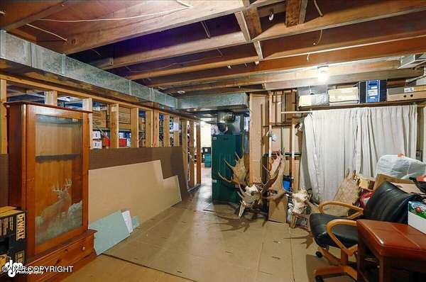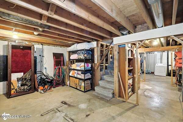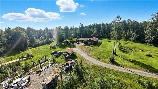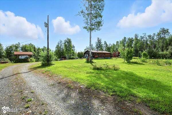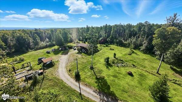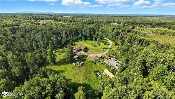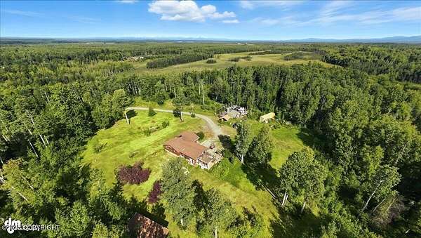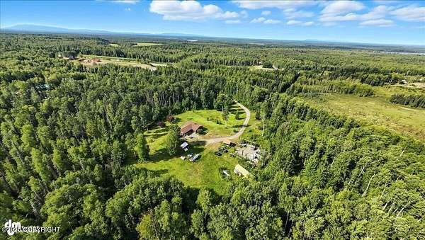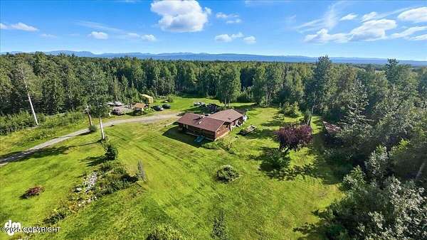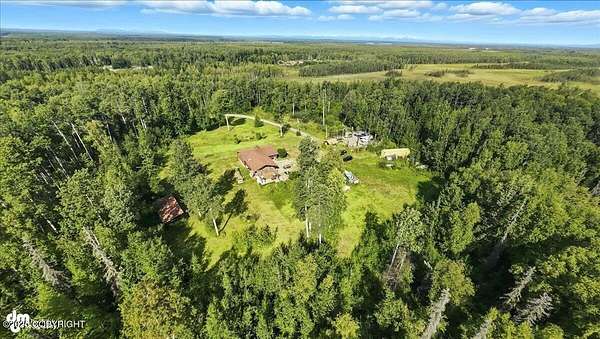 Est $2,112/moLog ranch home with a full 1,300 sf basement. 12 ACRES with a 100 yard shooting range.!! Flat land for building more homes or cabins. This home is the real Alaskan living style with no neighbors in site. Come call in the moose from your front porch!