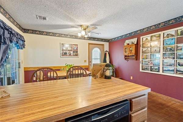 - Attic Storage, Blinds, Ceiling Fans, Eat-in-Kitchen, Smoke Detector, Woodstove
