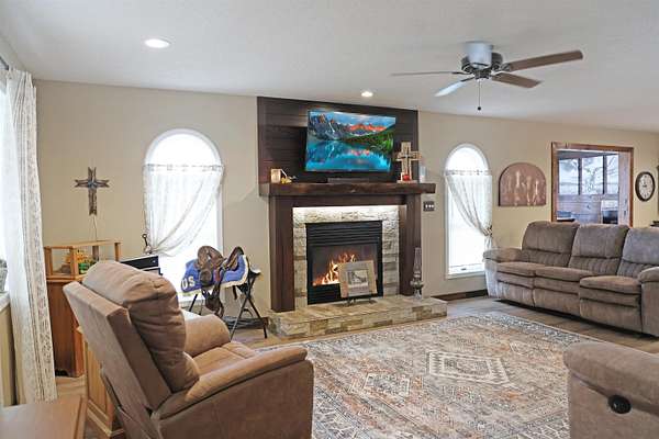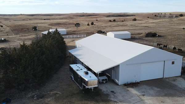 Country home with endless possibilities!! Discover a unique opportunity with this 4~bedroom, 2.5~bath home, with additional rental income from a 1 bed, 1 bath apartment with private laundry. This home, located within 4 miles of Hays does not disappoint. Complete with dual laundry rooms, an office, bonus room and a full unfinished basement, situated on 119 +\~ acres of pasture along a quiet dead~end road. This property features ample storage with a two~car~attached garage and a three~car detached garage, alongside multiple barns including a spacious 50x100 barn with an additional lean~to. Currently being operated as a profitable horse boarding stable with room to grow, it includes multiple barns and presents endless possibilities. Enjoy the versatility of an outdoor arena and round pen, making it perfect for equestrian enthusiasts or those seeking a peaceful rural lifestyle. Enjoy the beautiful tranquil sunrises on the front porch and watch the sun set over the hills in the evening. There is literally so much to see and love about this property that you need to see if for yourself. For more information, or to take a look at all this property has to offer, call\text Tim Cossaart with RE\MAX Pro at 785~639~6395...
