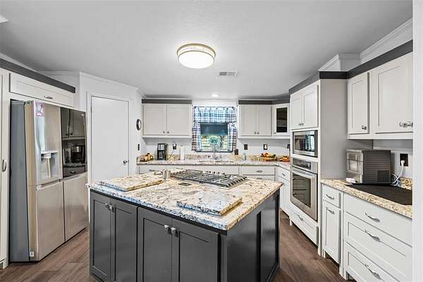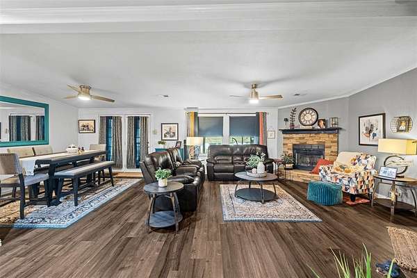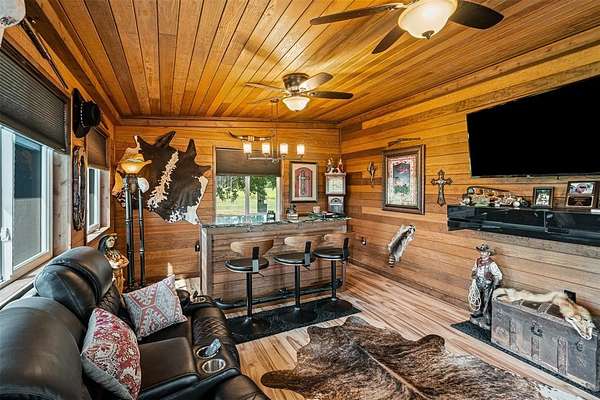 Awesome horse property in Wise County with multiple structures and possibilities. The main house has many upgrades and is not a traditional mobile home. The house has upgraded Hardie Board plank siding, a bonus media room with bar in the back connected to the large back porch. A great place to watch a game on the weekends. The house has an open concept with large nice kitchen with newer appliances, granite counters, and added on storage room. The closet space was remodeled and converted into a large walk in.