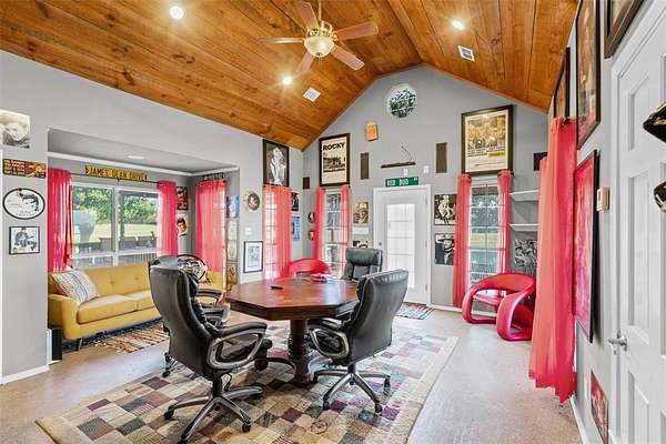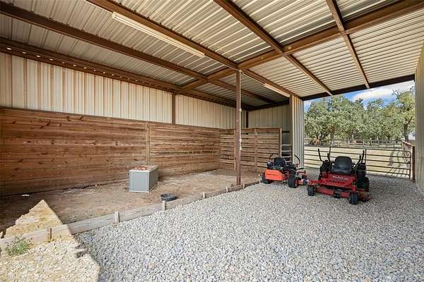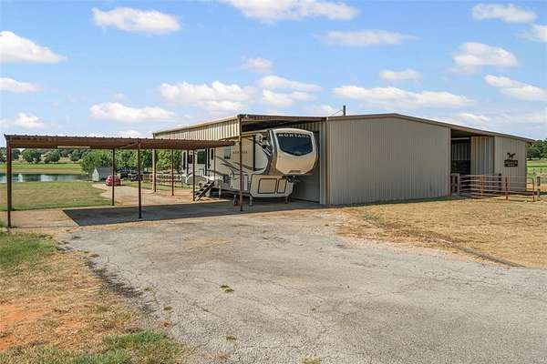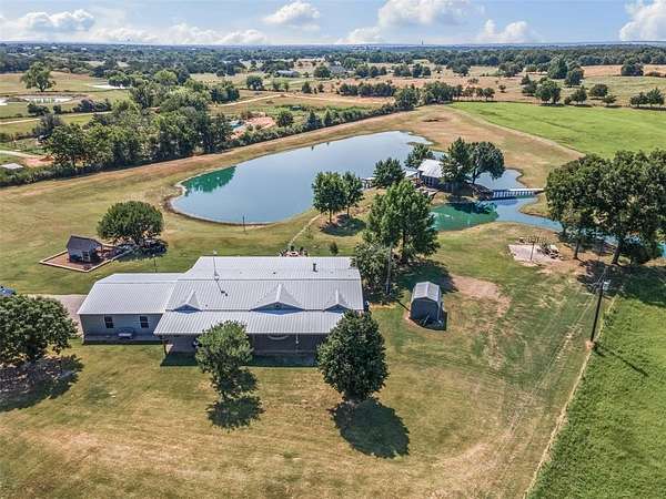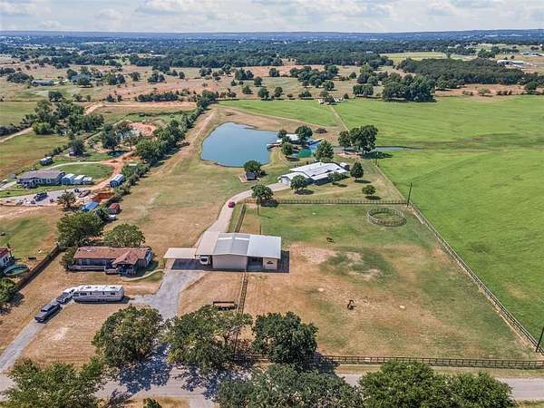 Includes a 2nd mobile home on property that can be rented as well as a 574 sq ft bunk house built in 2008 with bathroom, kitchen on a 2 acre private lake with 880 sq ft of deck. A true fisherman's paradise. The lake has its own well and was stocked with catfish, crappie, and minnows. Great property to entertain with a large fire pit, basketball court, and play house for the kids. This is the perfect property to enjoy the outdoors, tenant sees deer nearly daily roaming. Includes a large metal shop with tack room and easily could be converted into a 3 horse stable. Has a large fenced in area for horses or other animals to graze with nice wooden fence fairly new. Also contains a RV or boat covered storage area. The back 2 acres of the property has been used in the past to grow coastal hay. A very unique well maintained property with country vibes yet not too far away from the Metroplex.